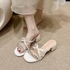 Fashion Sweet Butterfly-knot Narrow Band Slippers Women Luxury Rhinestone Design Brand Slide Sandals Comfort Elegant High Heeled Sandals