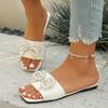 Fashion 2025 Shoes for Women Open Toe Women's Slippers Plus Size Daily Slippers Women String Bead Bow Tie Square Toe Flat with Sandals