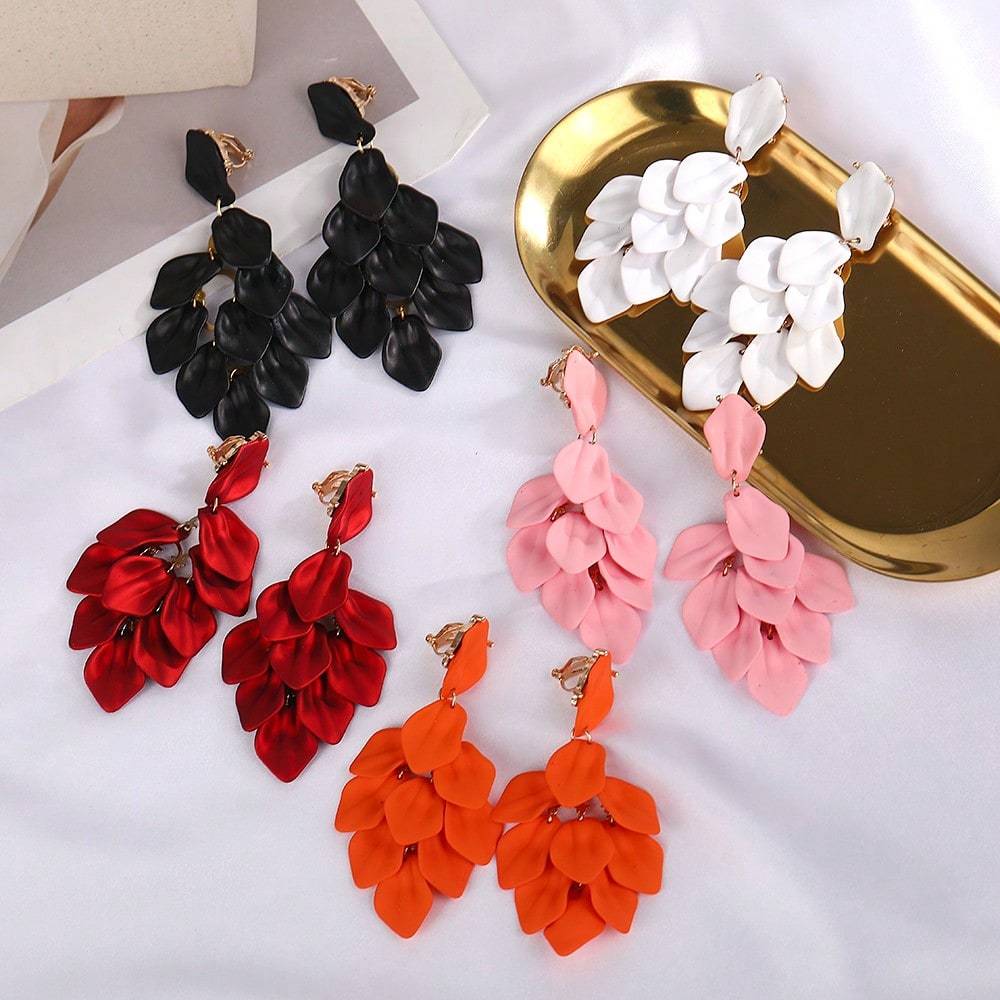 1 пара богемных акриловых клипс-серег с кисточками из лепестков и цветов, высококачественные вечерние украшения без пирсинга для женщин
