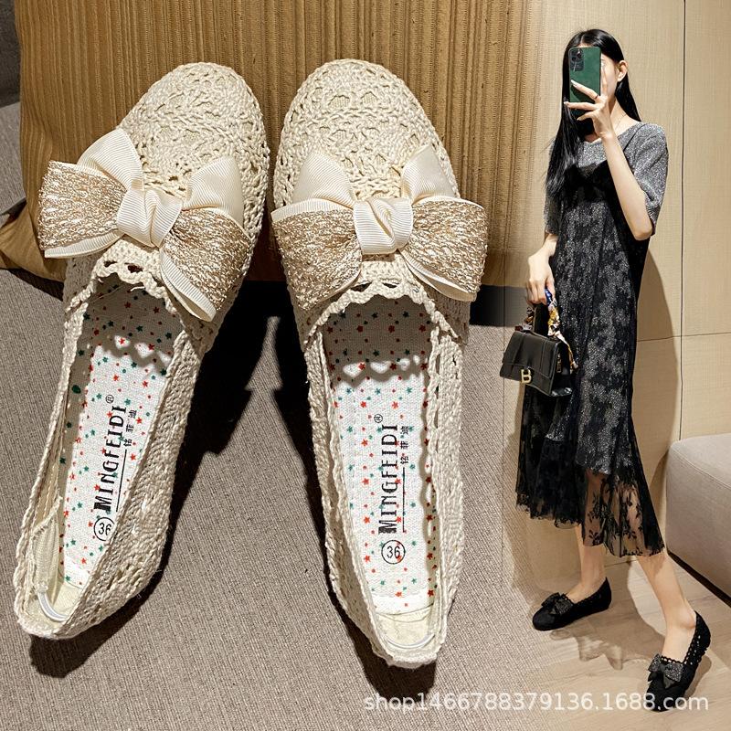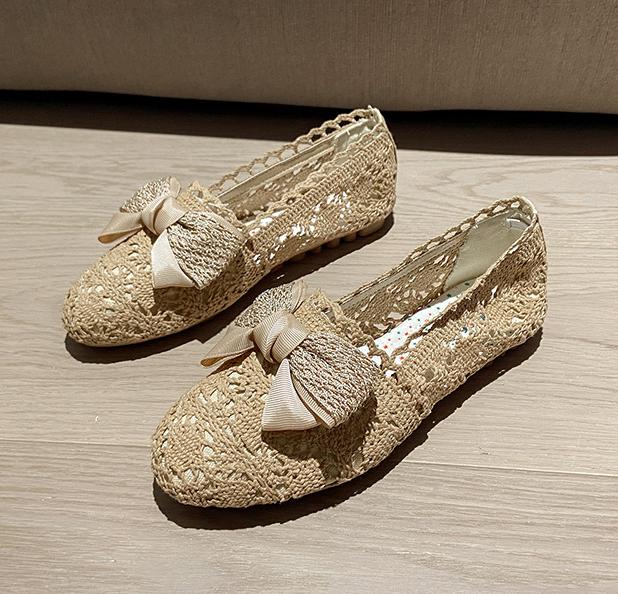 Мода 2025 Весна Лето Дышащие Балетки из Воздушной Сетки Женские Туфли с Вырезами и Бантом Кружевные Лоферы Женские Мокасины для Босой Ноги Mujer Обувь-Лодочки