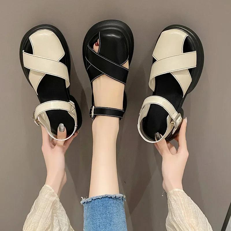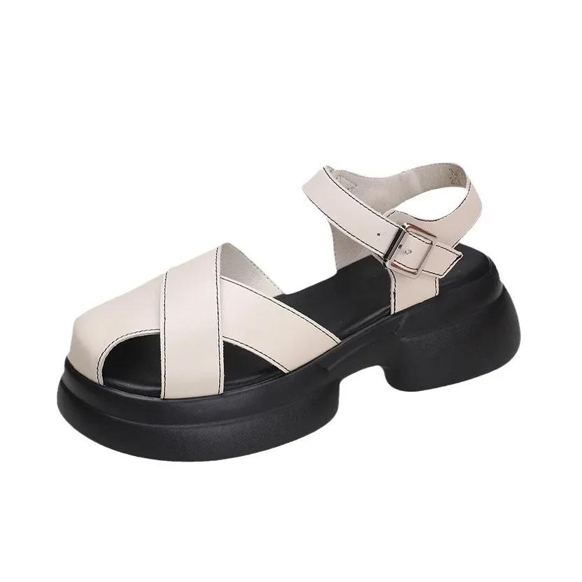 Мода 2024 Лето мода Новые Сандалии с открытым носом на толстой подошве для Актрисы Элегантный Модный Сказочный Стиль Повседневные Сандалии на Одной Пуговице