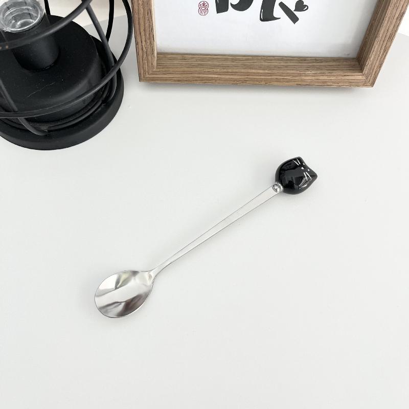 Cartoon Ceramic Spoon Ceramic Black And White Cat Spoon Ice Cream Spoon Stainless Steel Coffee Spoon