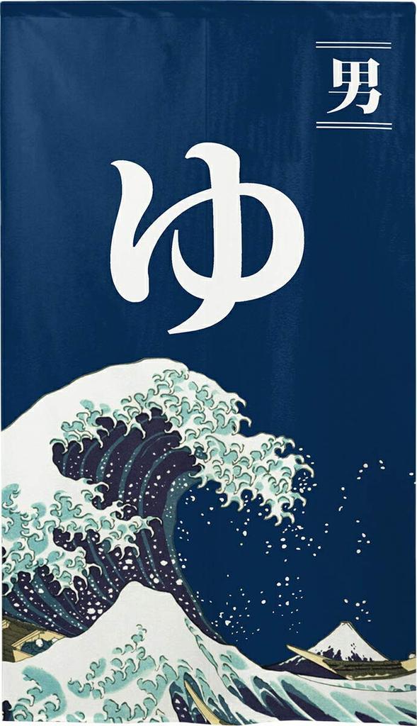 Ю Норен 85 см Ширина x 150 см Белая Волна Ю 94098 Огнестойкая Занавеска, Длинная, Мужская Баня, Рисунок, Огнестойкая (большой),