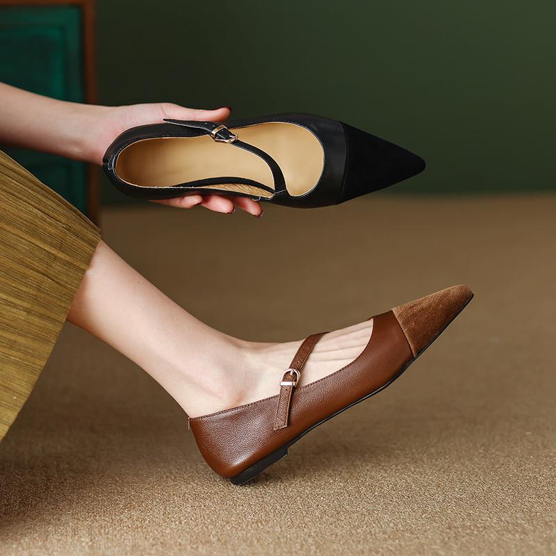 Новая весенняя женская обувь из натуральной кожи, туфли-лодочки с острым носком в стиле ретро, кожаная обувь на плоской подошве, женские туфли на каблуке, женские туфли на плоской подошве
