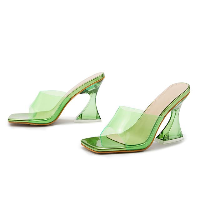 Летние женские тапочки на высоком каблуке 11 см, модные прозрачные тапочки, женские туфли для выпускного вечера на прозрачном каблуке, зеленом, розовом и красном цветах