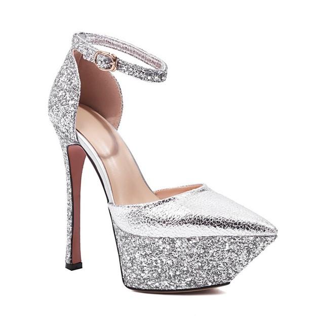 Брендовый дизайн, блестящие золотистые женские сандалии, новые сексуальные женские туфли на высоком каблуке 15 см, непромокаемая обувь на платформе, для банкетной вечеринки, размер 32-43