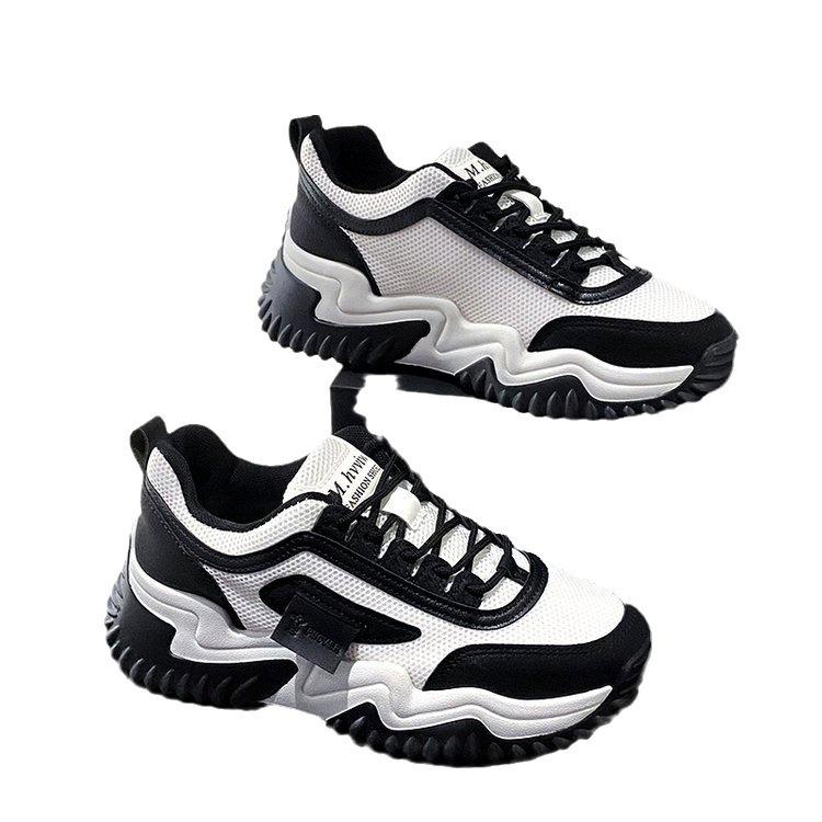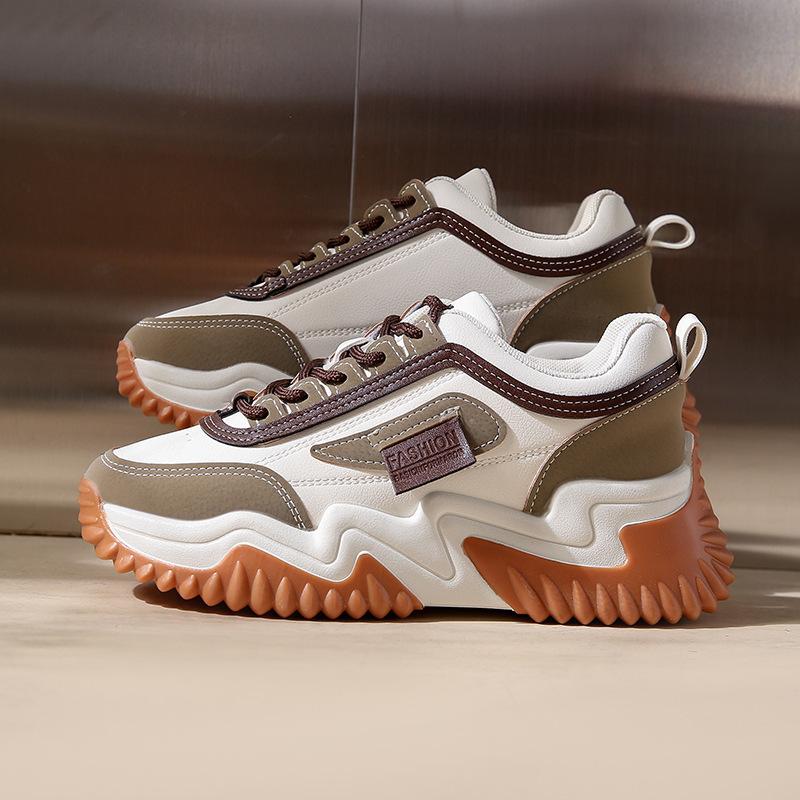 Бутиковая женская обувь. Осенние женские тонкие туфли для отдыха. Модные неуклюжие кроссовки на высоком каблуке с круглым носком и шнуровкой спереди.
