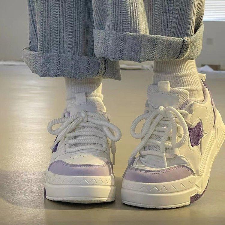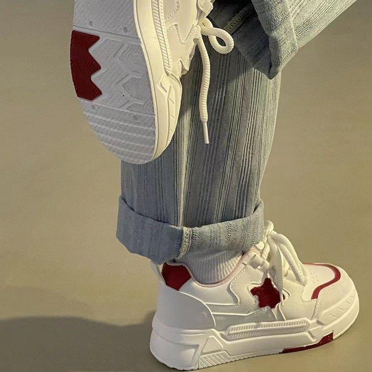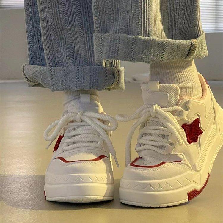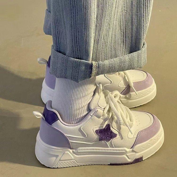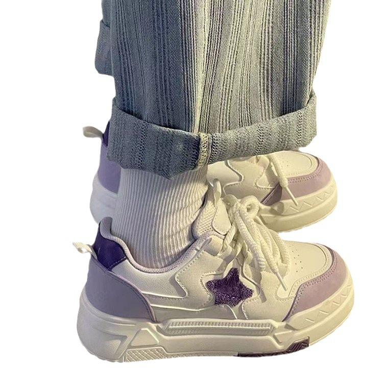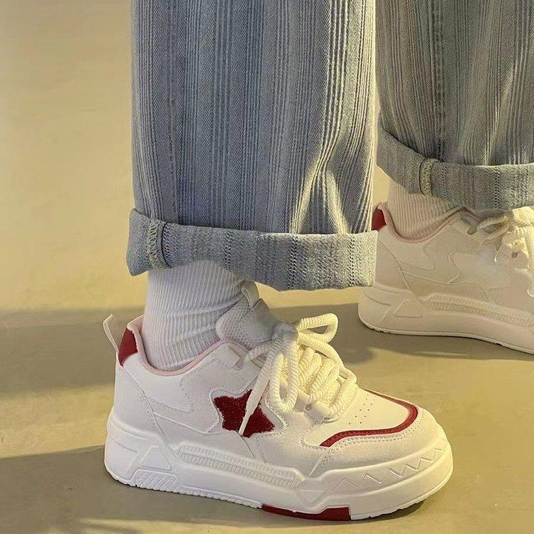 Новые летние кроссовки на платформе и платформе со звездным узором, студенческие женские повседневные спортивные белые туфли с круглой головкой на шнуровке