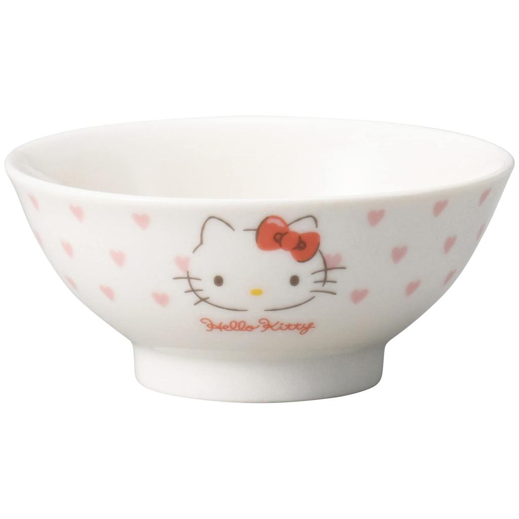 Канэсё керамика (Канешотуки) Пиала для риса Hello Kitty, Детская, Безопасна для мытья в посудомоечной машине и микроволновой печи, Мерч с Китти, 10,5 см, Дизайн с розовыми сердечками, Сделано в