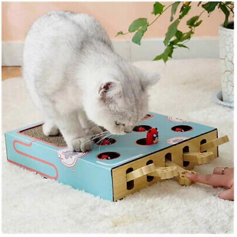 Когтеточка 3-в-1, Игрушки для обогащения для помещений, Игра «Ударь крота» для кошек, Интерактивные игрушки для охоты на мышей для кошек, Палочки-дразнилки для кошек для снятия скуки и