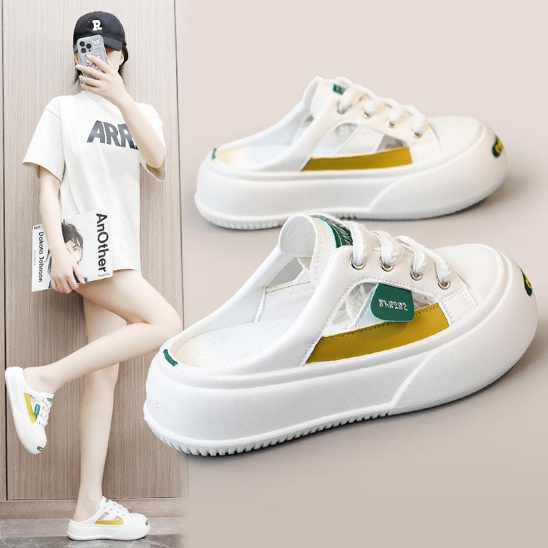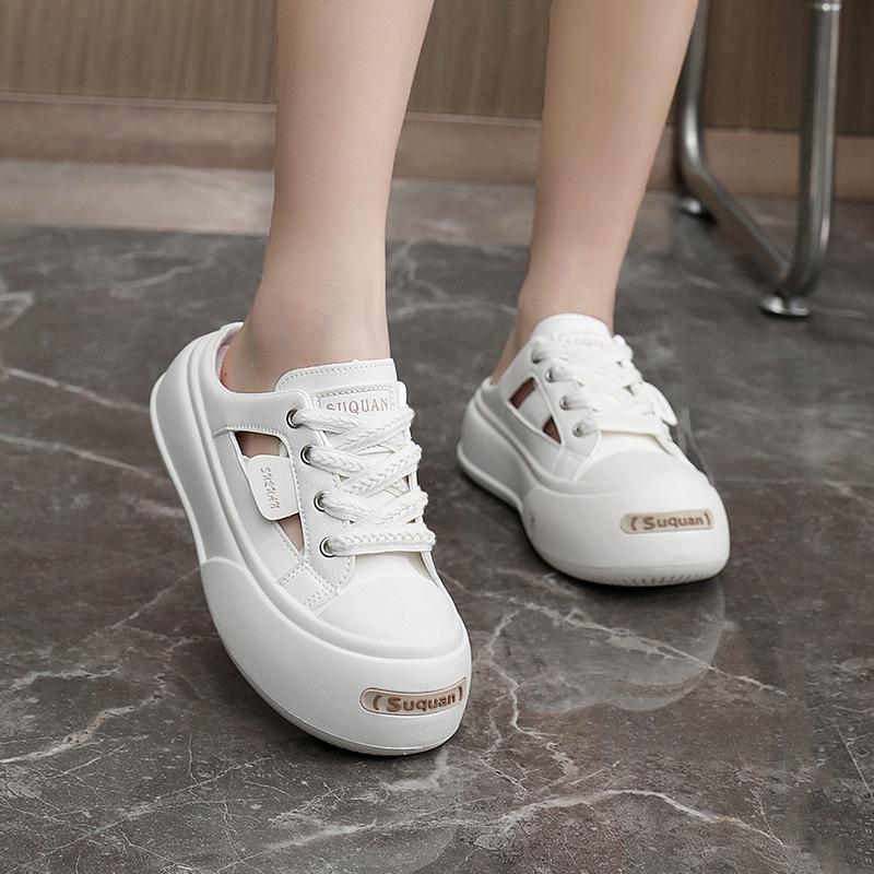 K1719 новые полутапочки, женская белая обувь, летние дышащие тонкие кроссовки на платформе, универсальные повседневные износостойкие кроссовки