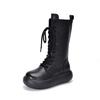 Johnature Ботинки до середины икры из натуральной кожи с круглым носком и толстой подошвой, в стиле ретро, на шнуровке, с боковой молнией, универсальные женские ботинки