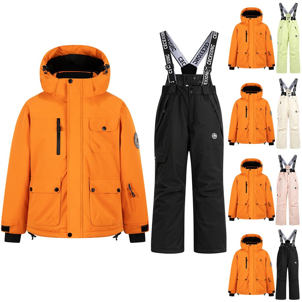 Детский модный лыжный комплект для мальчиков и девочек, утолщенный водонепроницаемый теплый лыжный костюм, куртка и брюки, комплект
