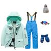 Детский модный лыжный комплект для мальчиков и девочек, утепленный, водонепроницаемый, термобелье, костюм из пяти предметов с курткой и брюками