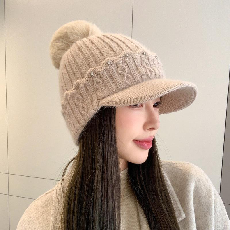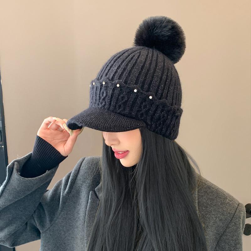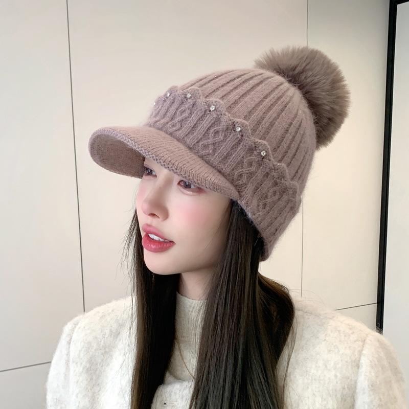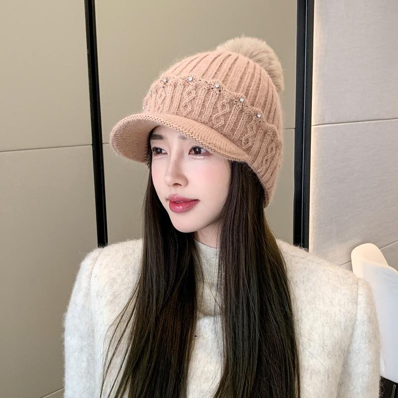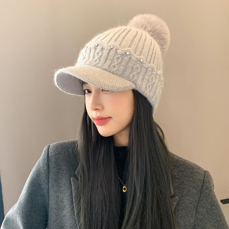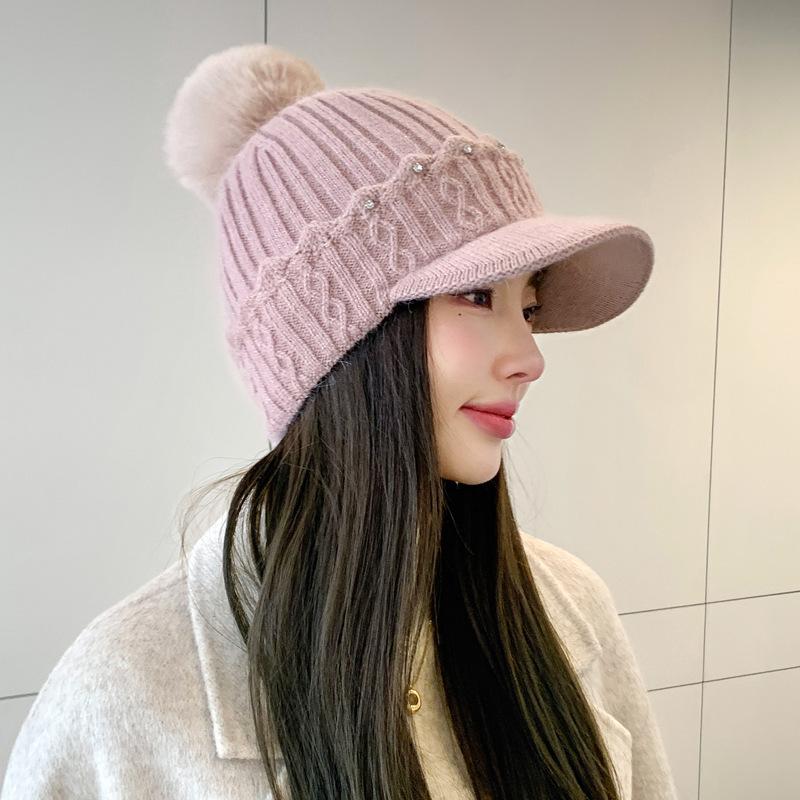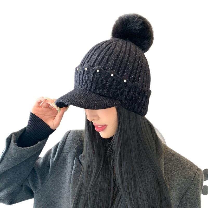 Новая осенне-зимняя теплая шерстяная шапка в корейском стиле, с бархатной защитой ушей, меховым помпоном, универсальная шапка-бини, тренд