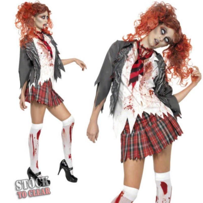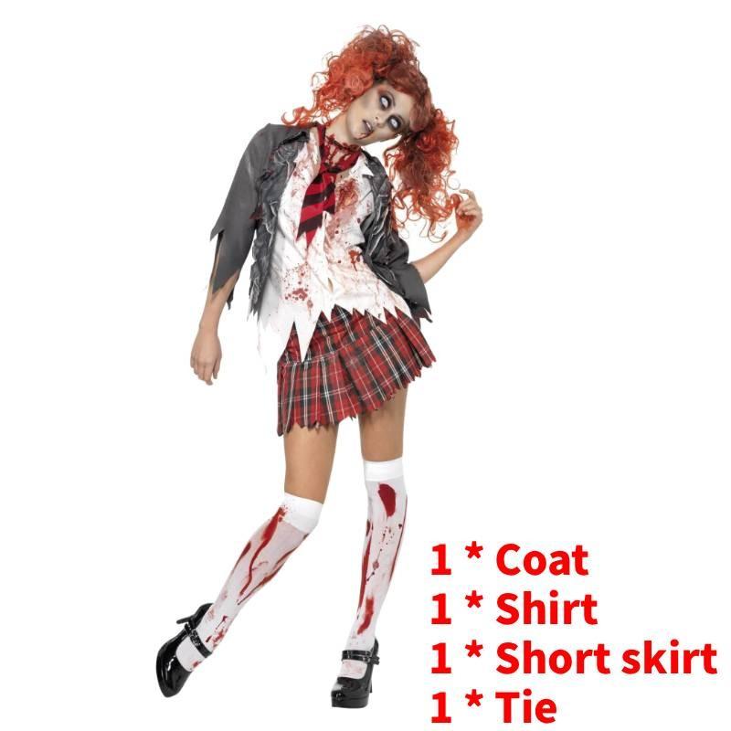 Женский Хэллоуин Ужасающий Костюм Зомби-Студентки для Косплея Макияж Вечеринка Наряд