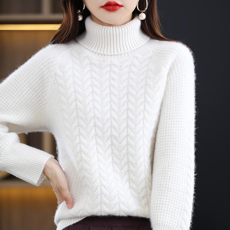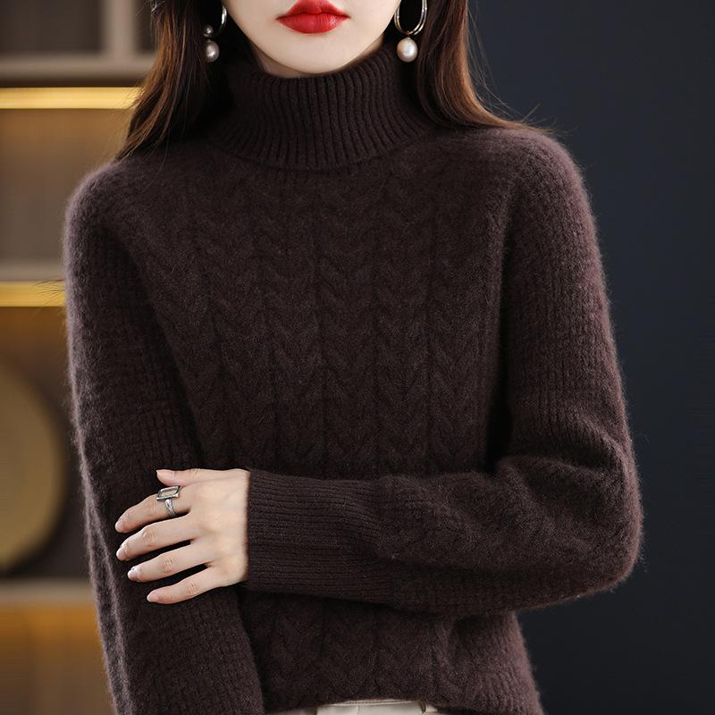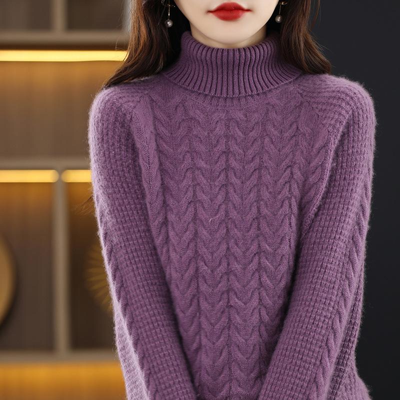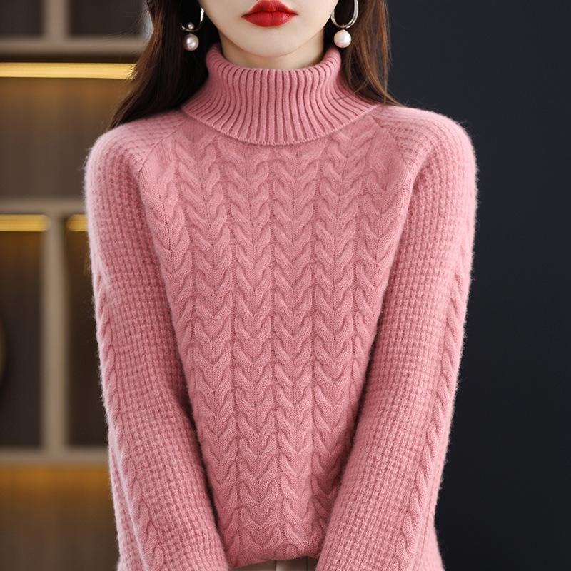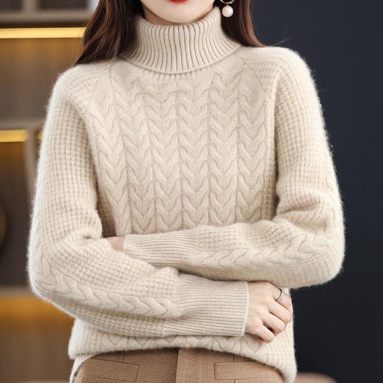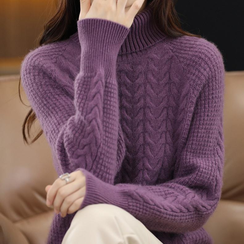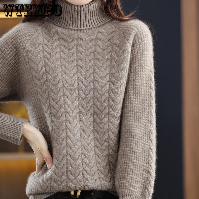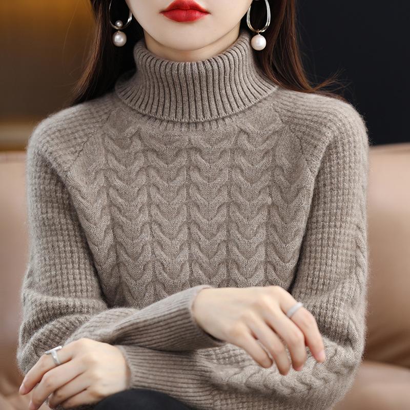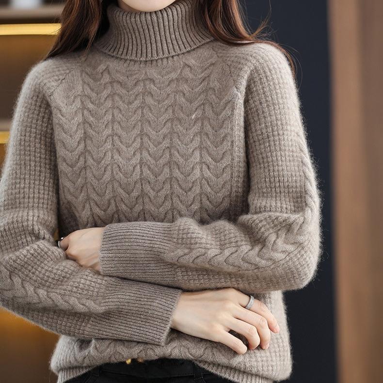 Женский трикотажный свитер с высоким воротником на осень и зиму, с косами, с длинным рукавом, свободный и повседневный пуловер