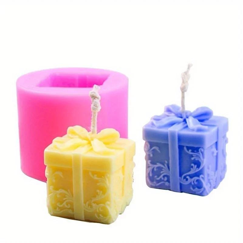 3D Рождественская подарочная коробка Силиконовая форма для свечей DIY Форма для помадки Торт Ароматерапия Гипсовые формы для выпечки печенья Конфеты Рождественский декор