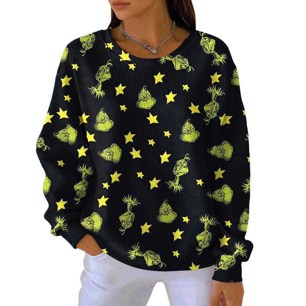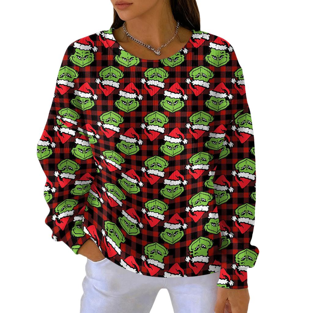 Женский модный повседневный пуловер с градиентным рождественским принтом, спортивный топ с длинным рукавом