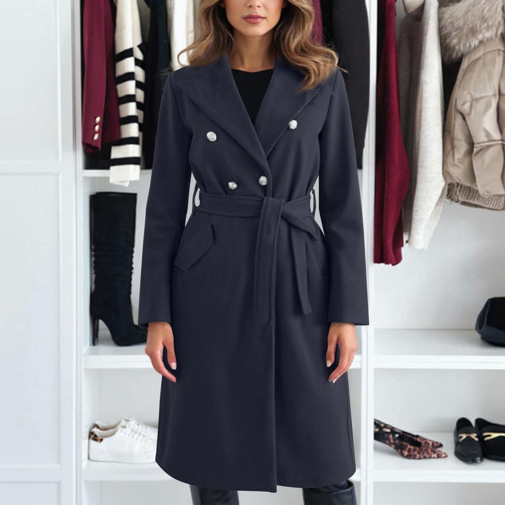 Женское модное повседневное шерстяное однотонное длинное пальто