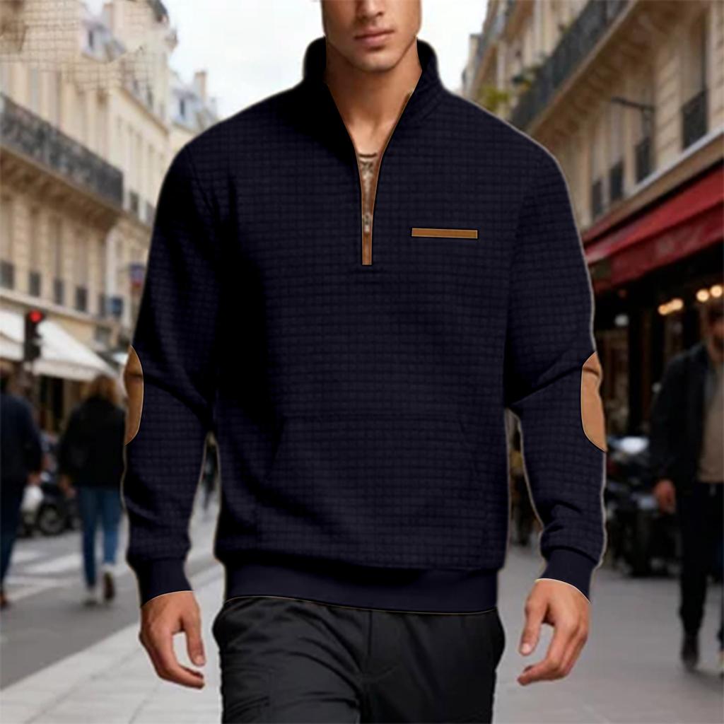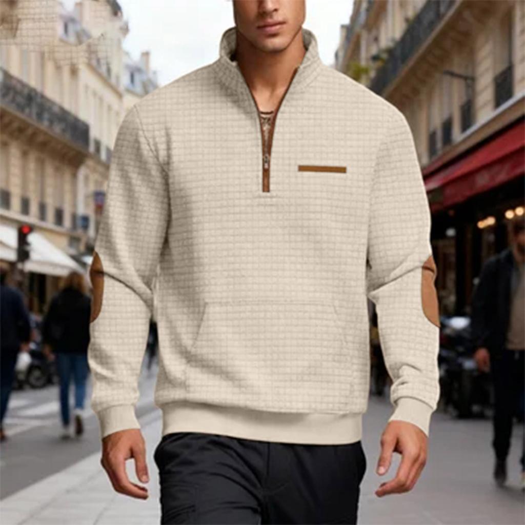 Мужской повседневный оверсайз однотонный уличный с мелкой клеткой свитер на молнии до середины с воротником-стойкой