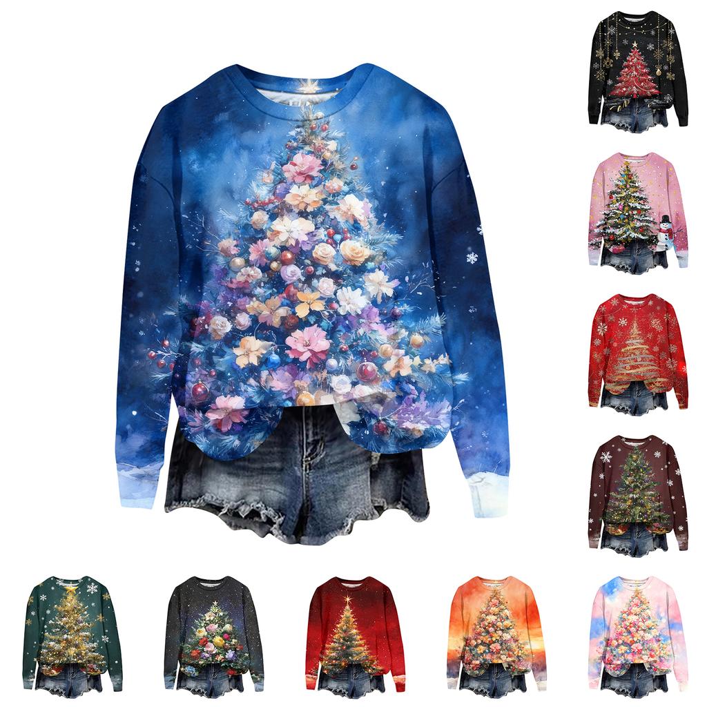 Женская модная рождественская принтованная толстовка с длинным рукавом и круглым вырезом — купить товар онлайн с бесплатной доставкой по всему миру!