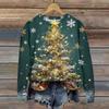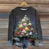 Женская модная рождественская принтованная толстовка с длинным рукавом и круглым вырезом