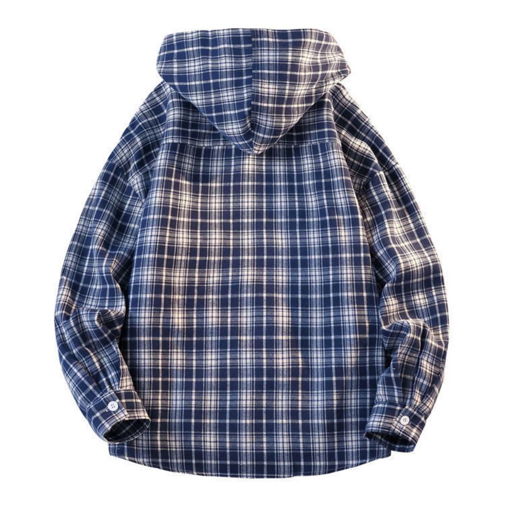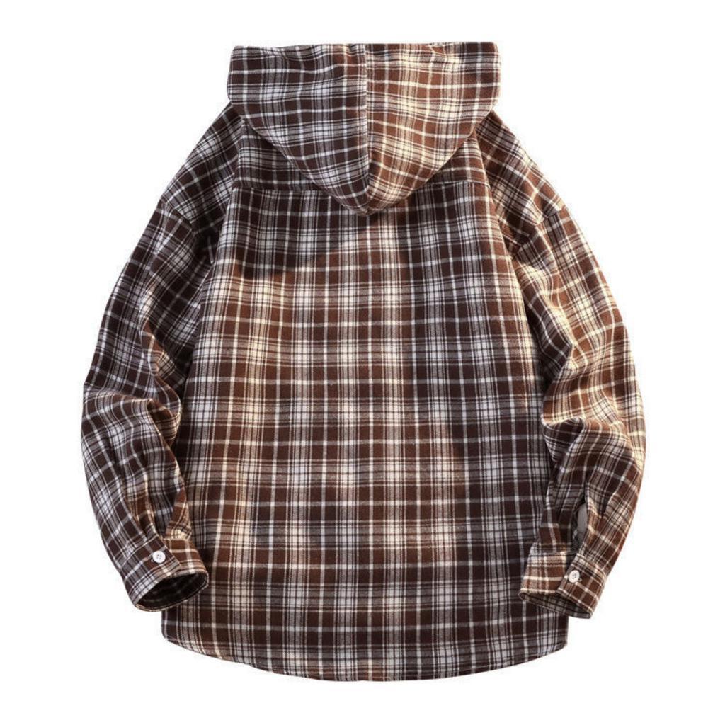 Мужская и женская свободная, повседневная и модная клетчатая рубашка с капюшоном с принтом, мужская рубашка с длинным рукавом на пуговицах, куртка