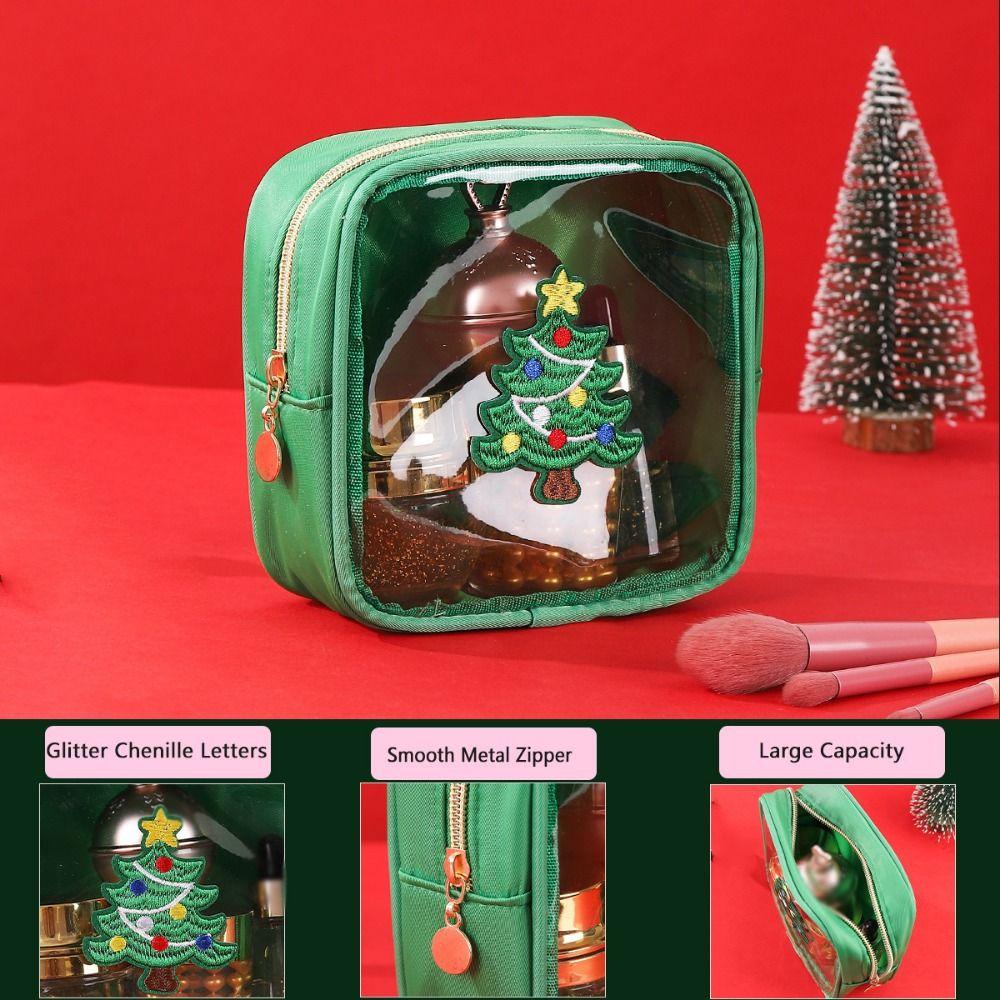 Creative Christmas Clear Travel Bags Cartoon Make Up Organizer Unique Cosmetic Zipper Pouch Girls