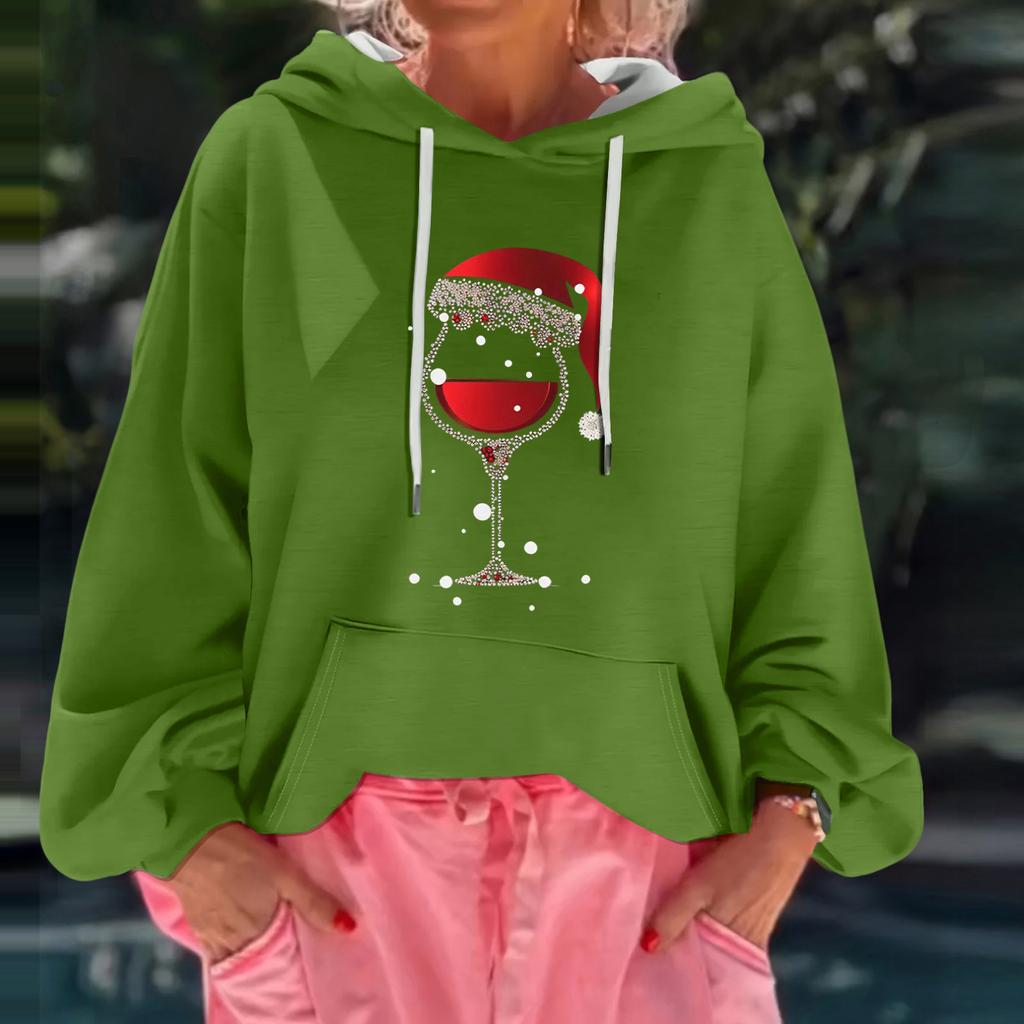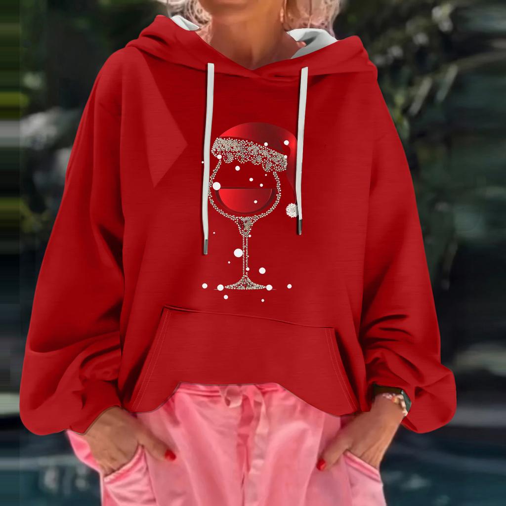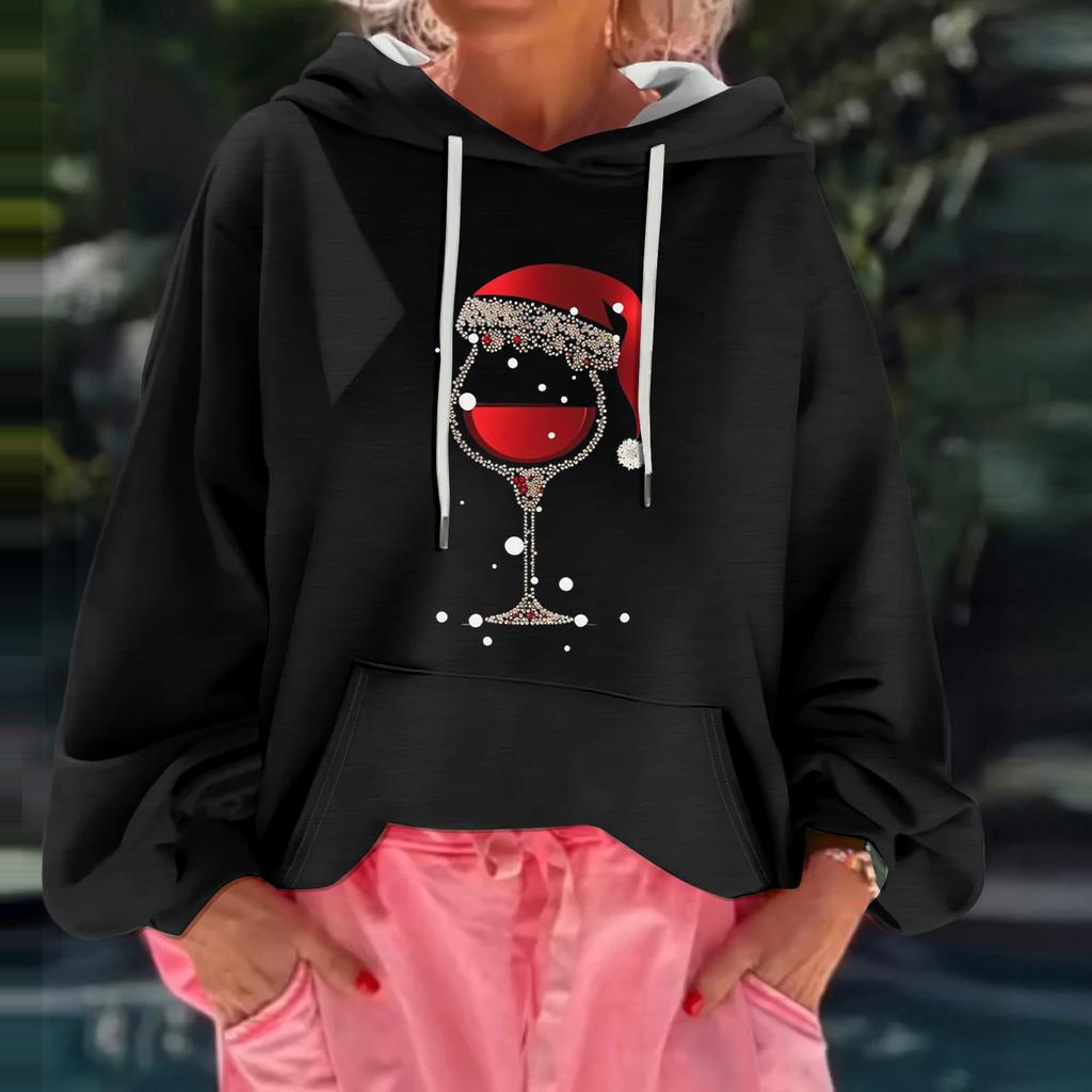 Женский рождественский принт, свободный повседневный худи с длинным рукавом и капюшоном