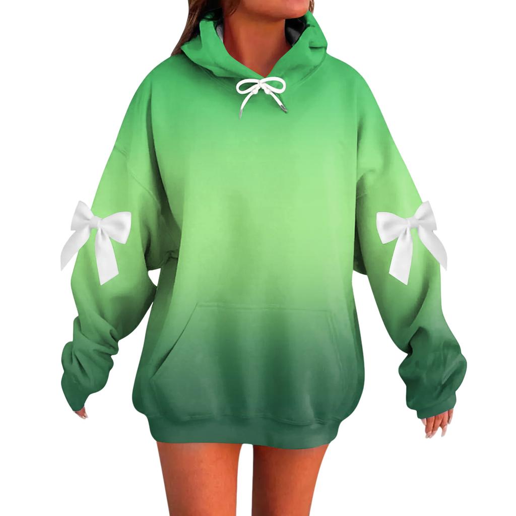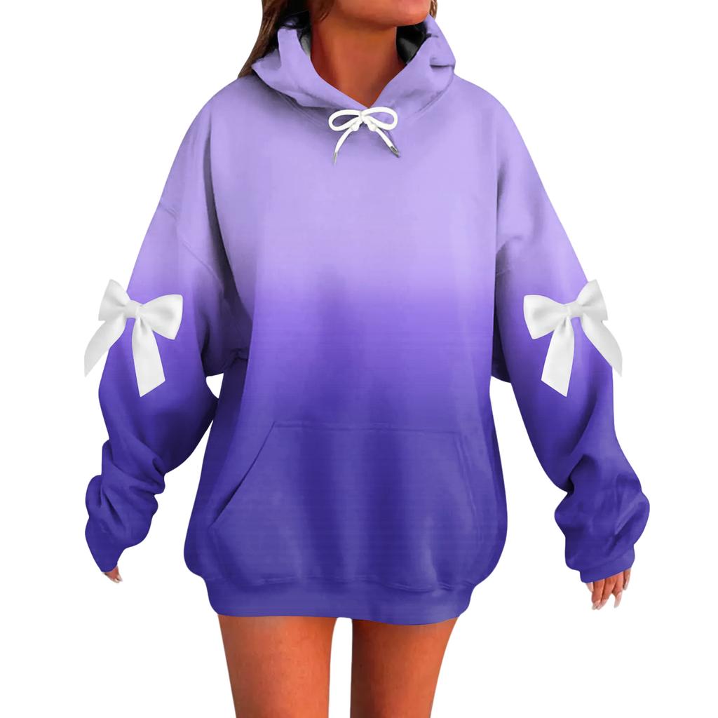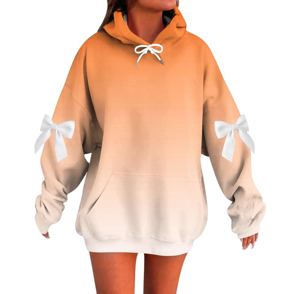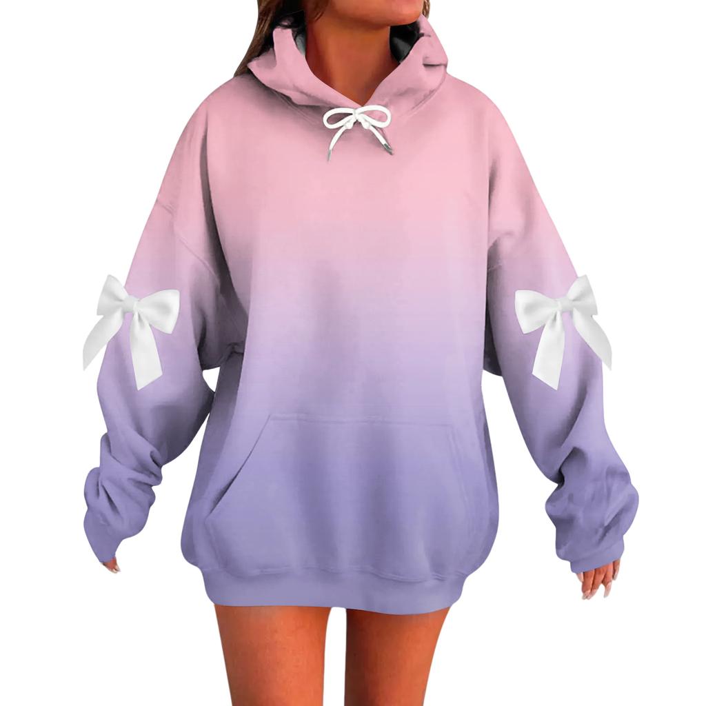 Женский градиентный принт, бант, длинный рукав, свободный крой, повязка на голову с веревочным капюшоном, толстовка-топ