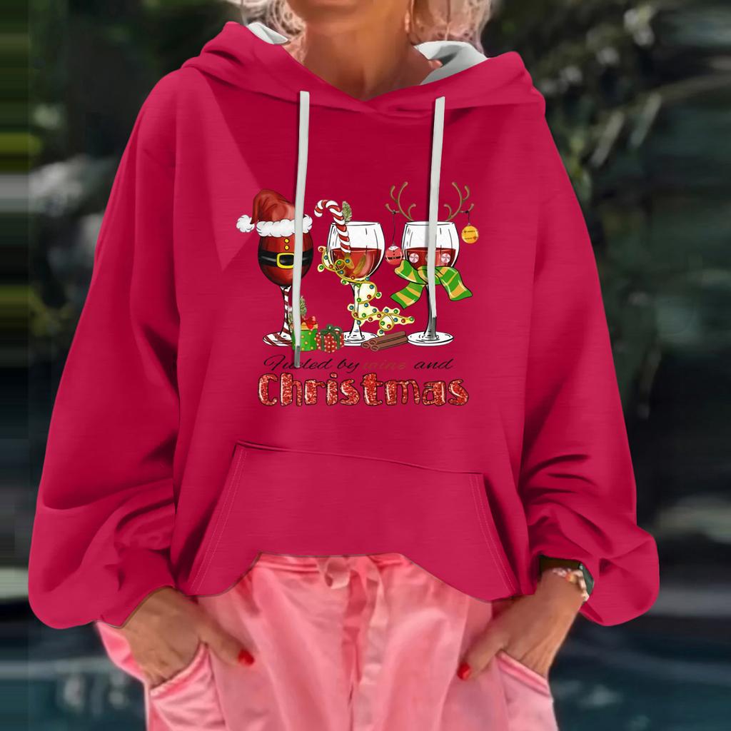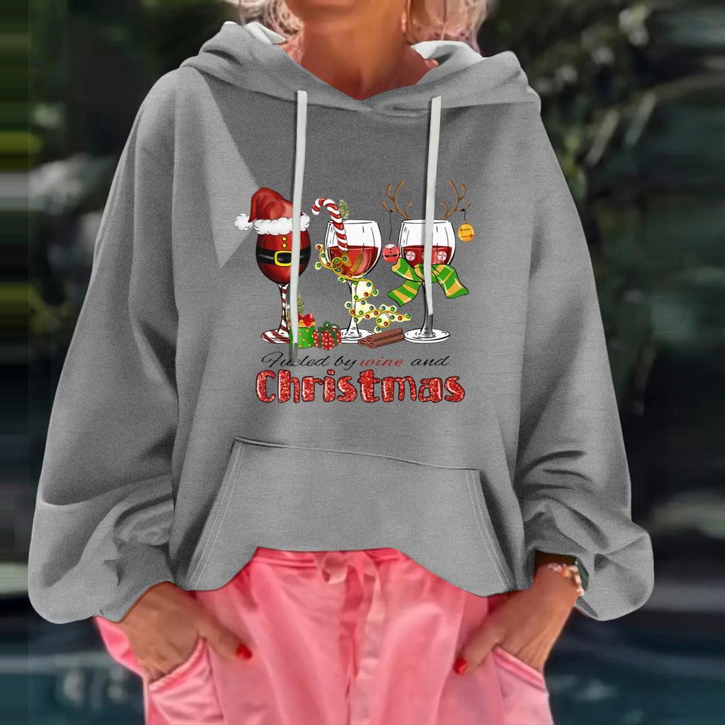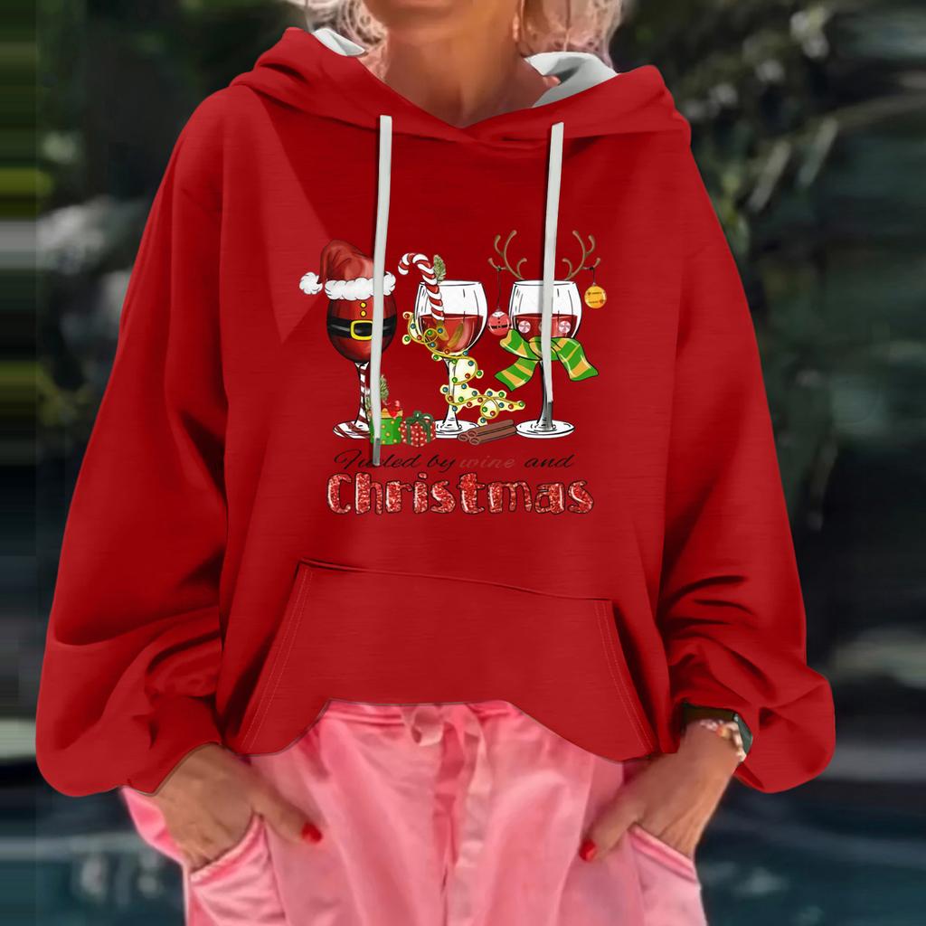 Женский рождественский принт, свободный повседневный худи с длинным рукавом и капюшоном