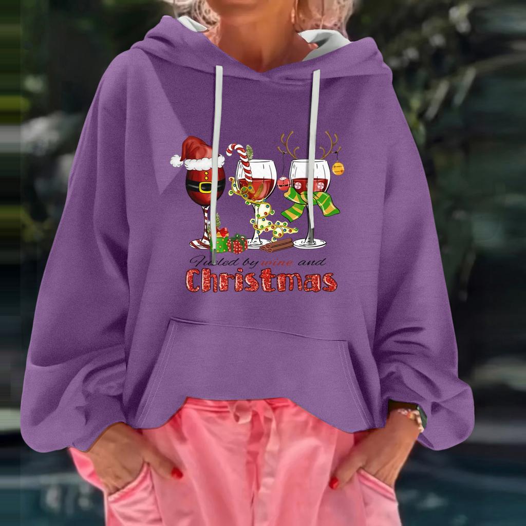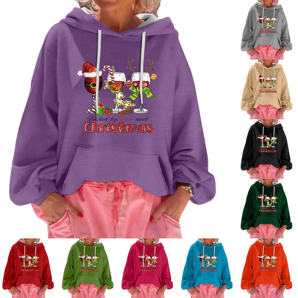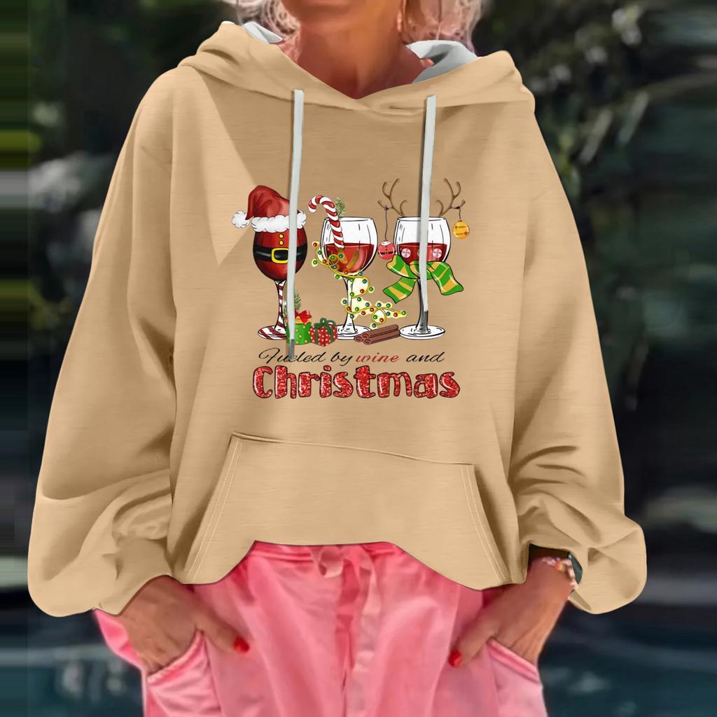 Женский рождественский принт, свободный повседневный худи с длинным рукавом и капюшоном