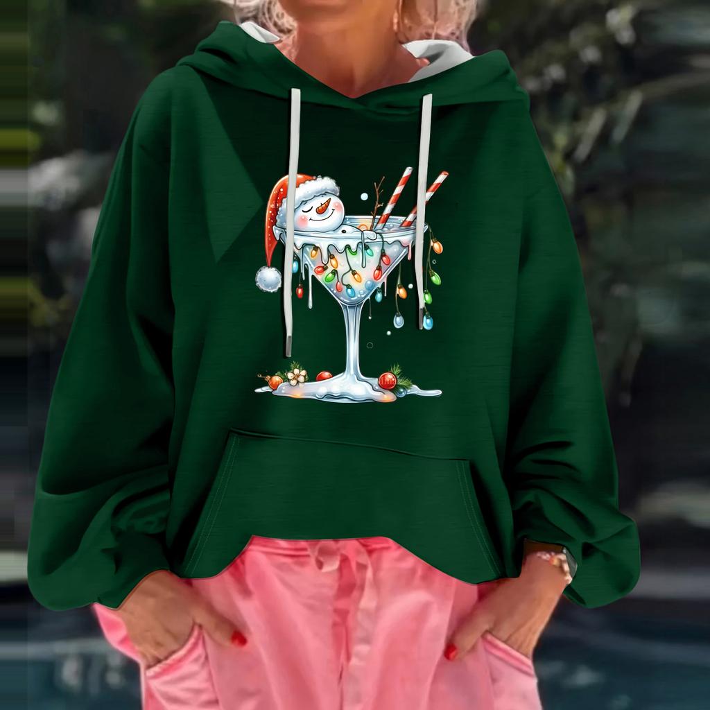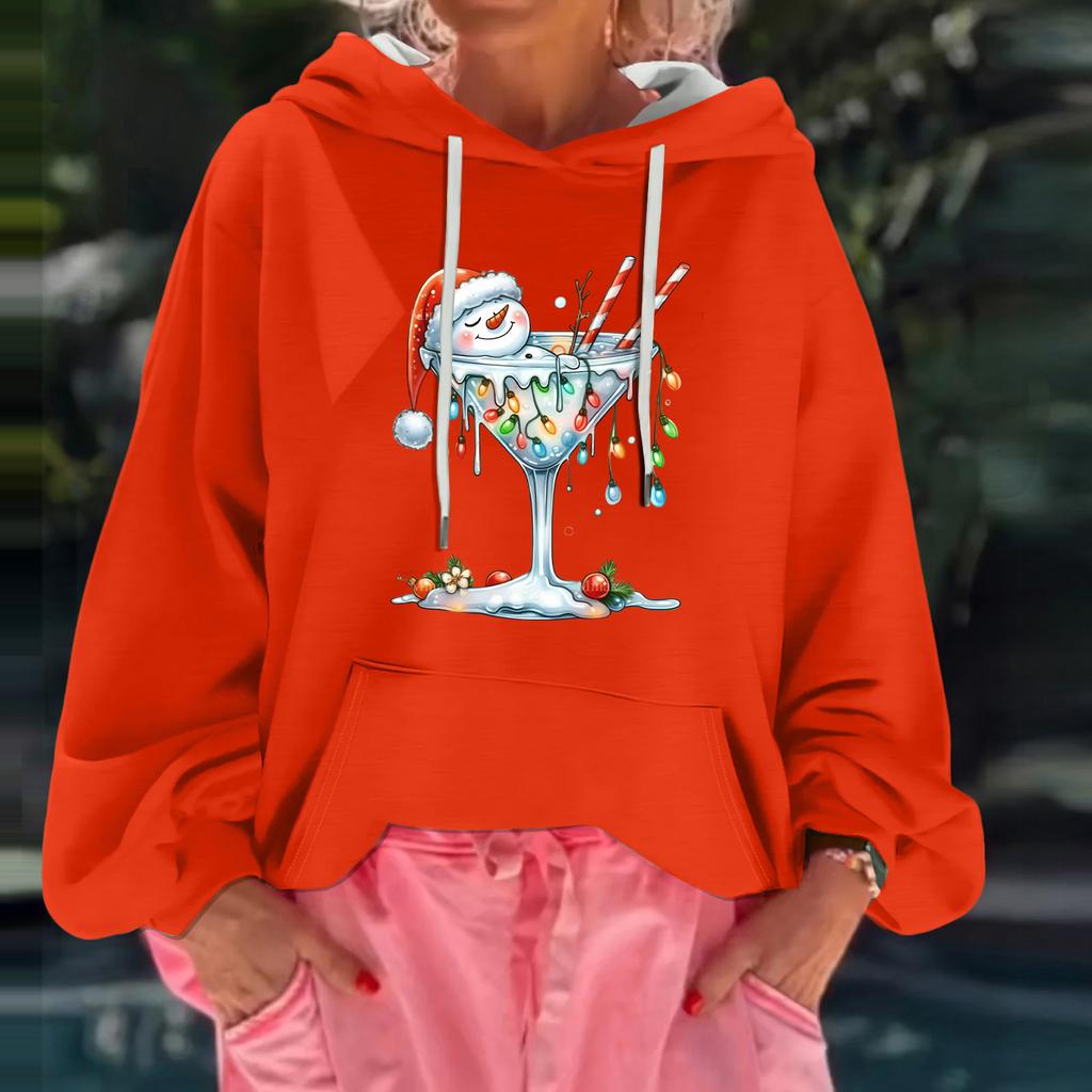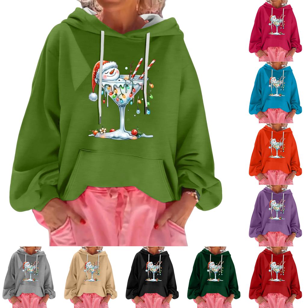 Женский рождественский принт, свободный повседневный худи с длинным рукавом и капюшоном
