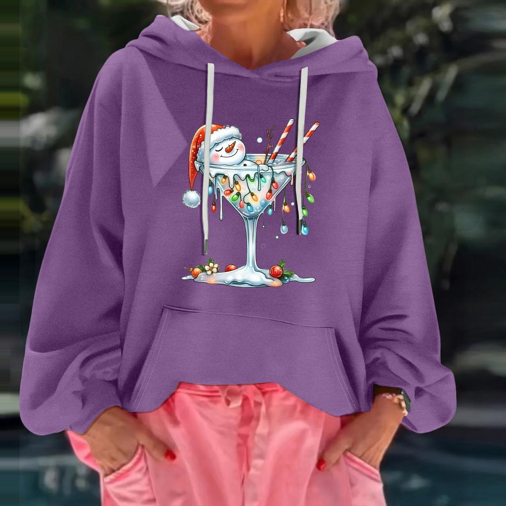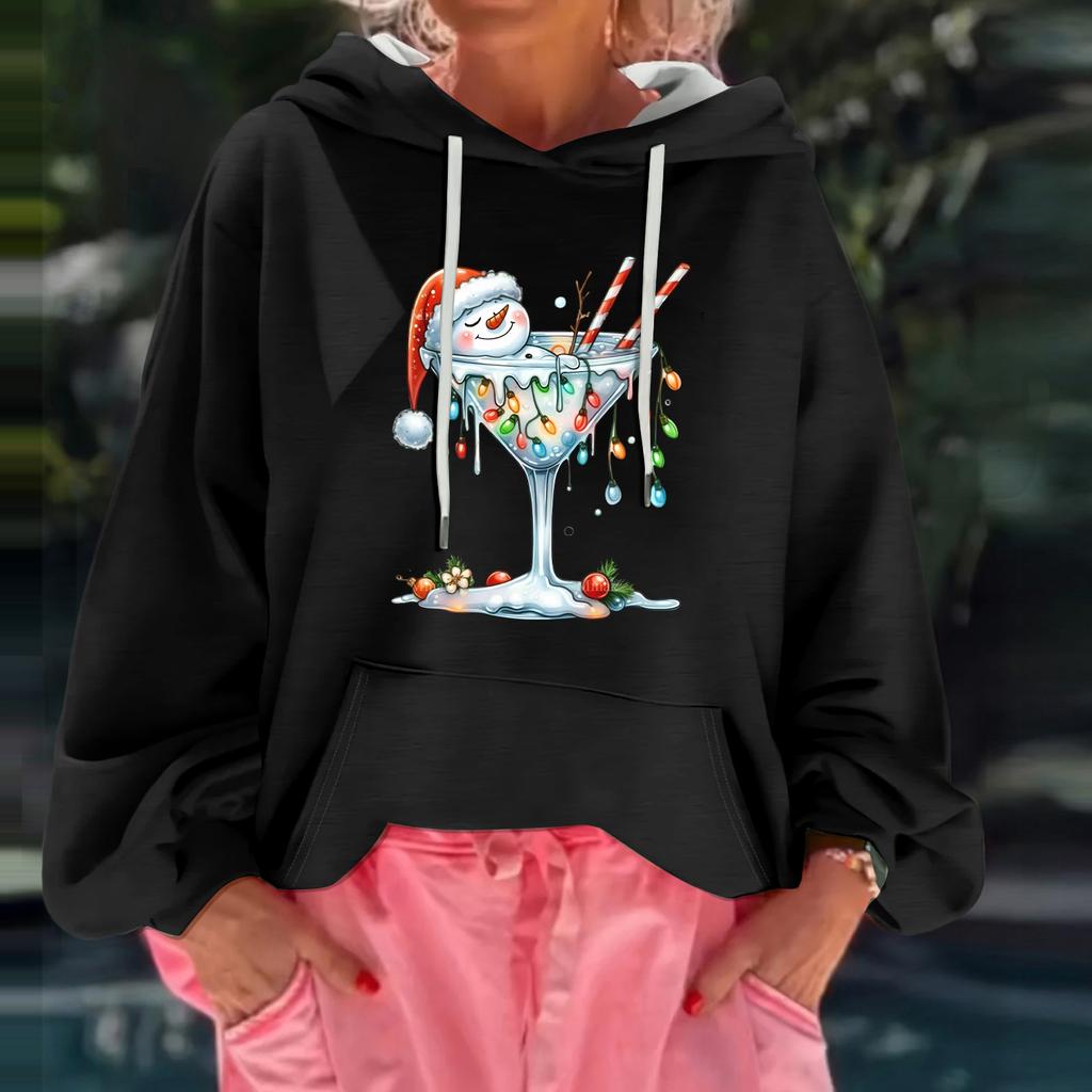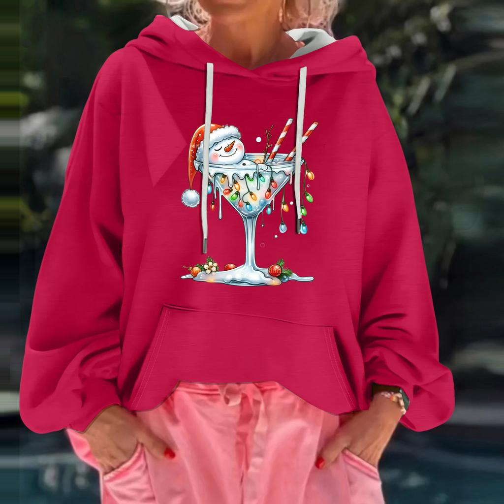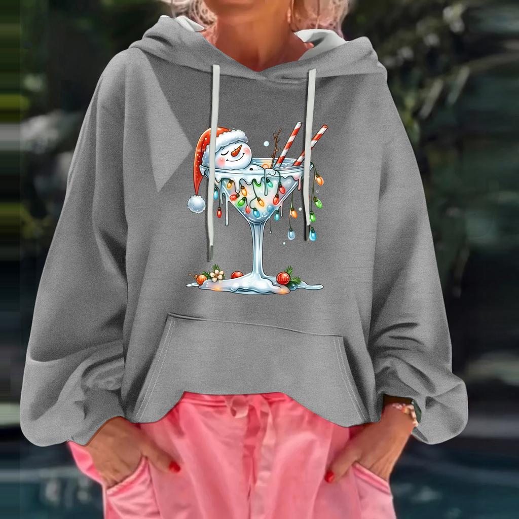 Женский рождественский принт, свободный повседневный худи с длинным рукавом и капюшоном