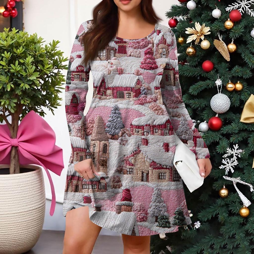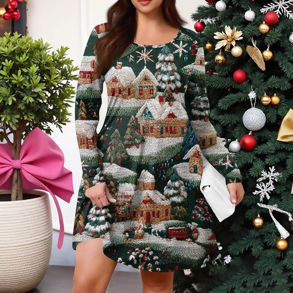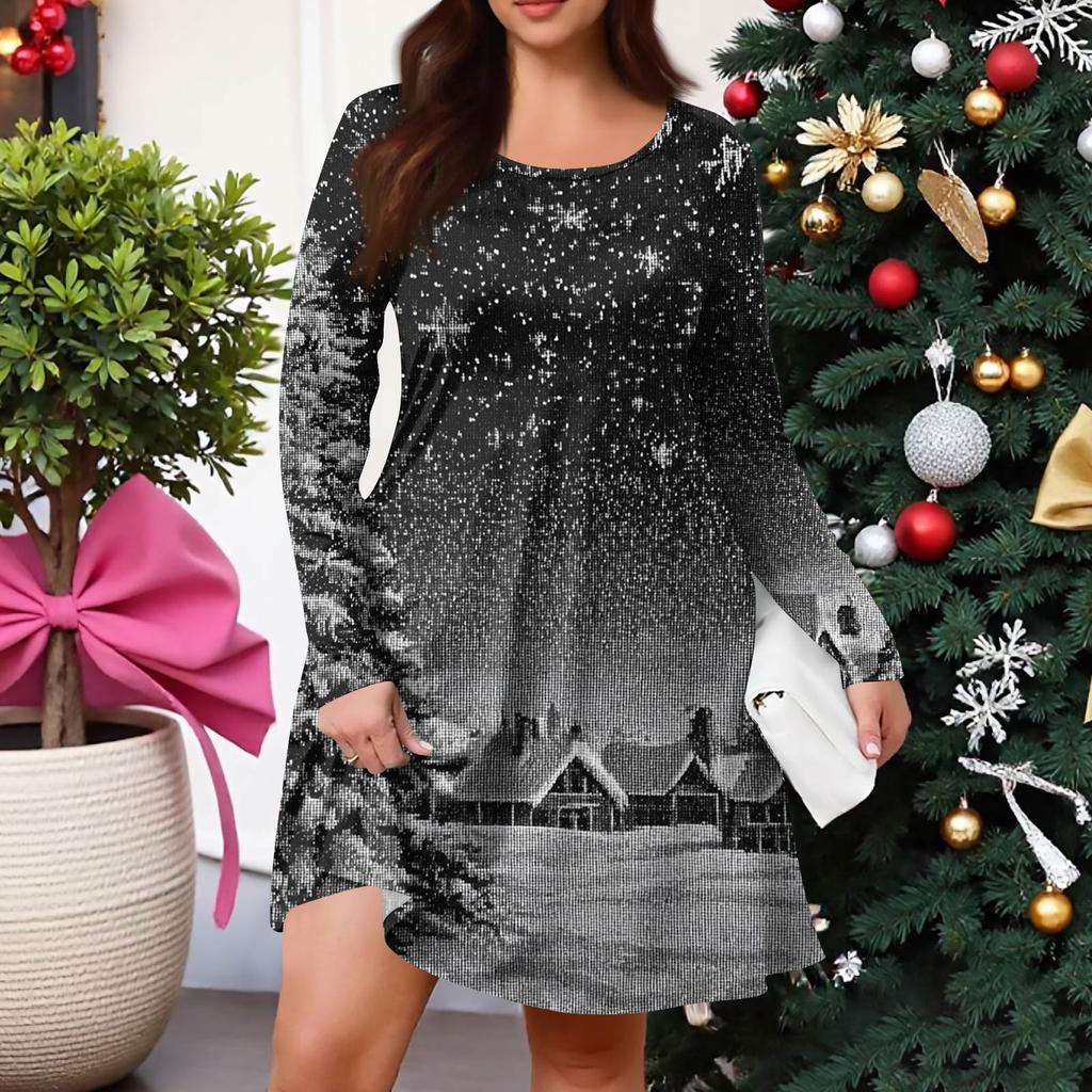 Женское повседневное платье большого размера с градиентным принтом, карманом, круглым вырезом и длинными рукавами, для весны/осени