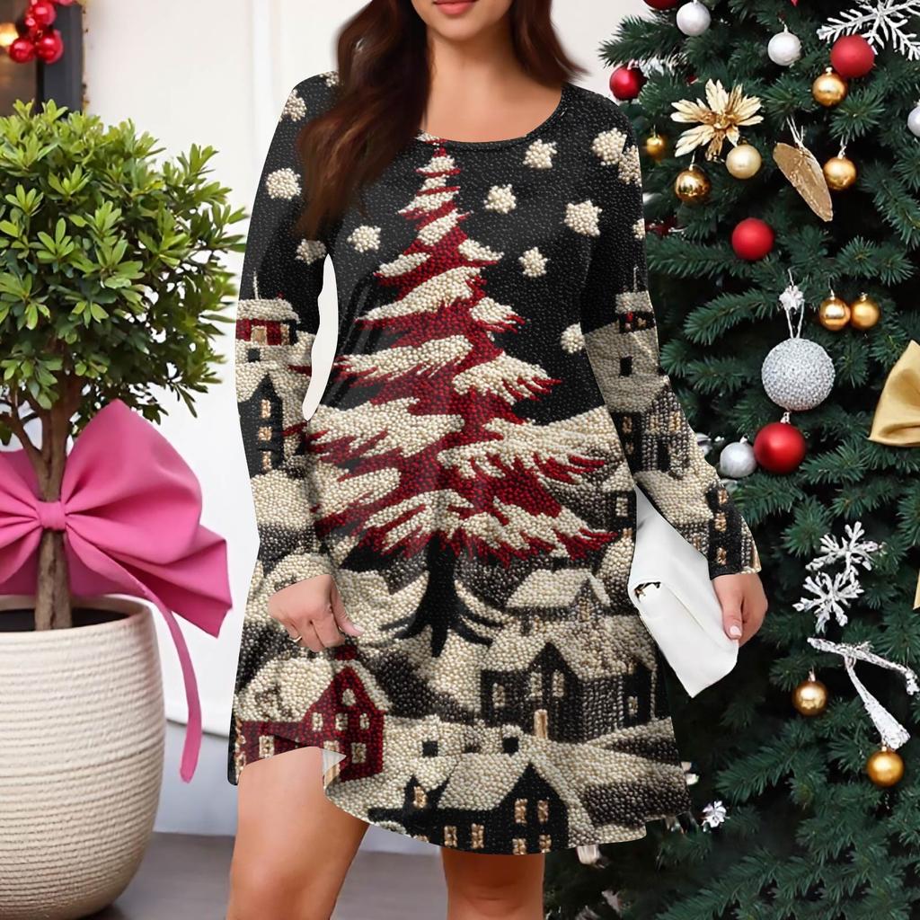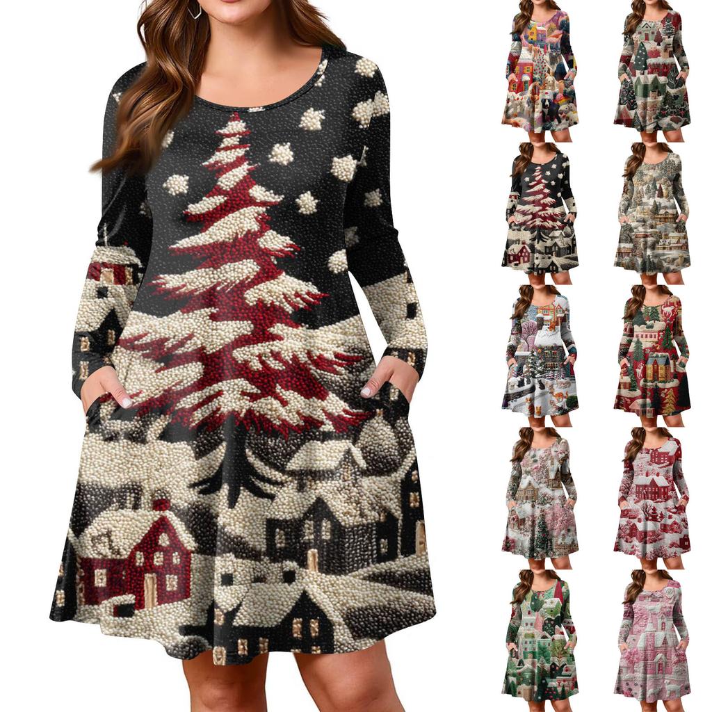 Женское повседневное платье большого размера с градиентным принтом, карманом, круглым вырезом и длинными рукавами, для весны/осени