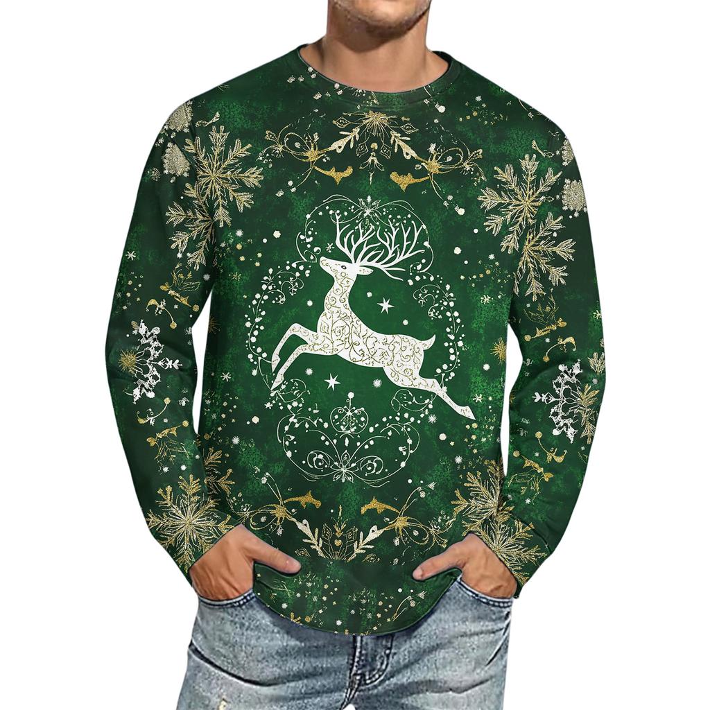Мужская рождественская рубашка с принтом, имитация хлопка, с длинным рукавом