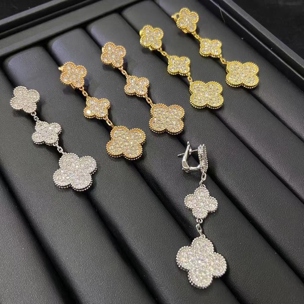 Высокая версия Новые серьги с четырёхлистным клевером и 3 цветками Женские Ретро Длинные Темпераментные Серьги Селебрити Женские
