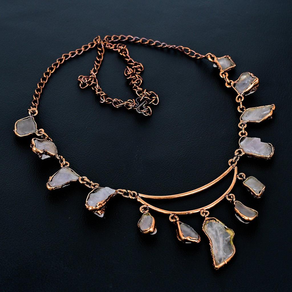 Ожерелье из розового кварца ручной работы, новейшего дизайна, ювелирное изделие, ожерелье из гальванизированной медью драгоценного камня, подарок для мамы