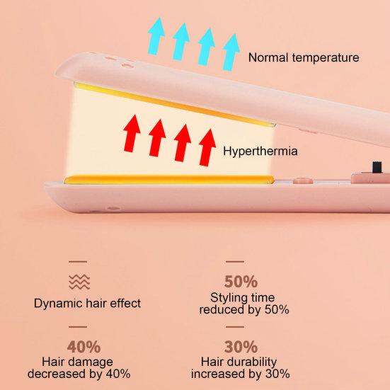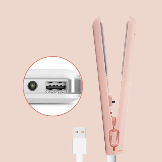 Безопасный и энергоэффективный беспроводной выпрямитель для волос, совместимый с различными USB-адаптерами питания.