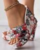 Женская обувь, модная обувь, повседневные шлепанцы, летние винтажные тапочки на танкетке с открытым носком и цветочным принтом