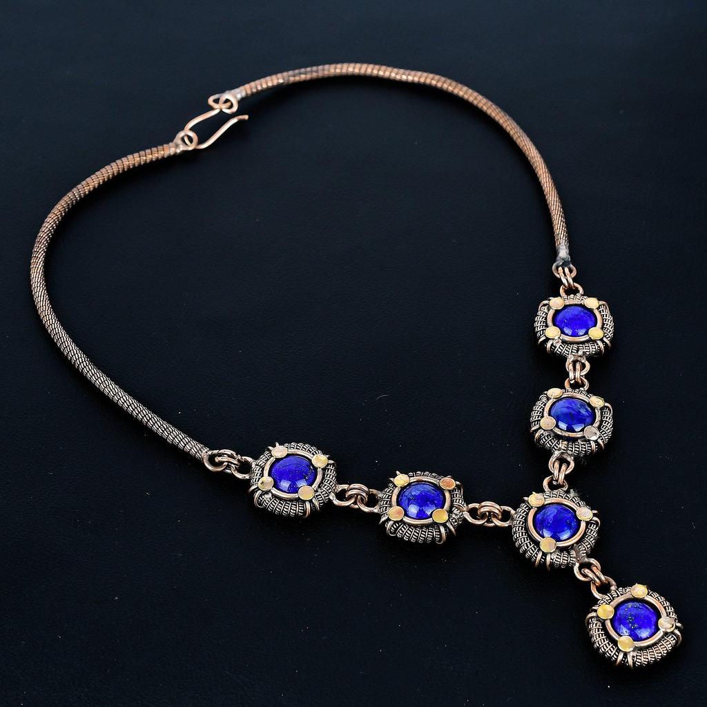 Ожерелье из синего сапфира, ожерелье с регулируемой цепочкой, обернутое медной проволокой 999 пробы. Подарок для женщин ожерелье ручной работы ювелирные изделия из драгоценных камней