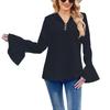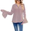 GMXIA Женские весенне-осенние рубашки с длинным рукавом и воланами, однотонные футболки, женские топы на пуговицах с V-образным вырезом