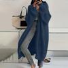 Женский однотонный кардиган машинной вязки с длинным рукавом до колена, ленивый тренд, куртка для волос средней длины