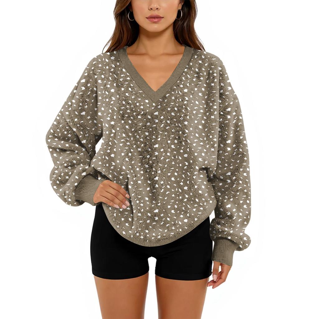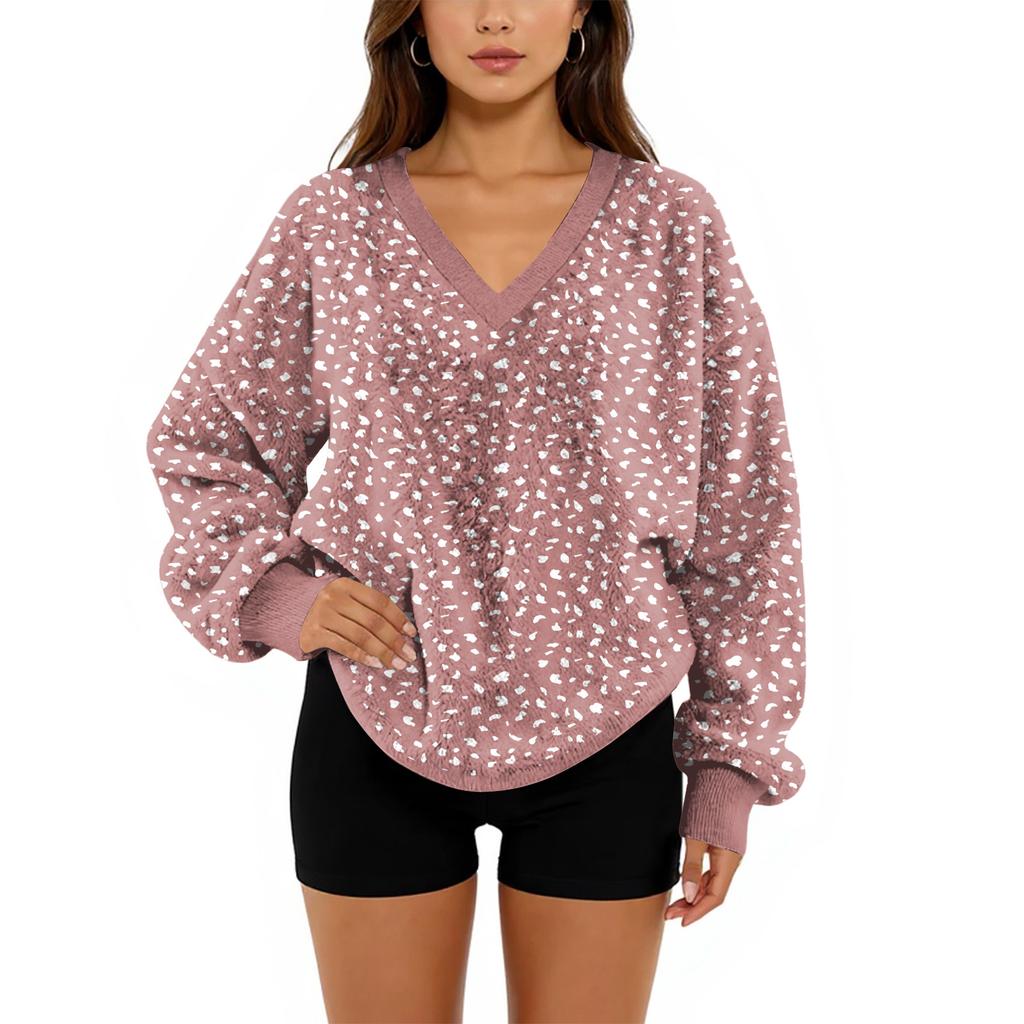 Женский свитшот с V-образным вырезом, плюшевый, однотонный, повседневный, модный, с длинным рукавом, с карманами, пуловер