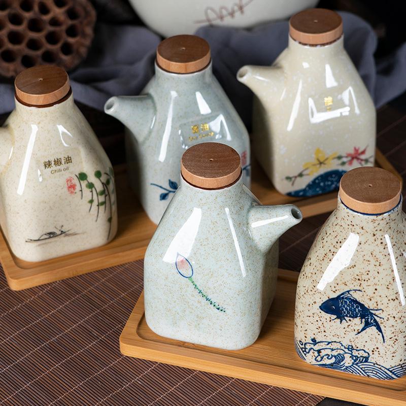 Новая китайская керамическая бутылка для соевого соуса, коммерческая уксусная бутылка-графин, кухонная бутылка для приправ, фляга для ликера/чили