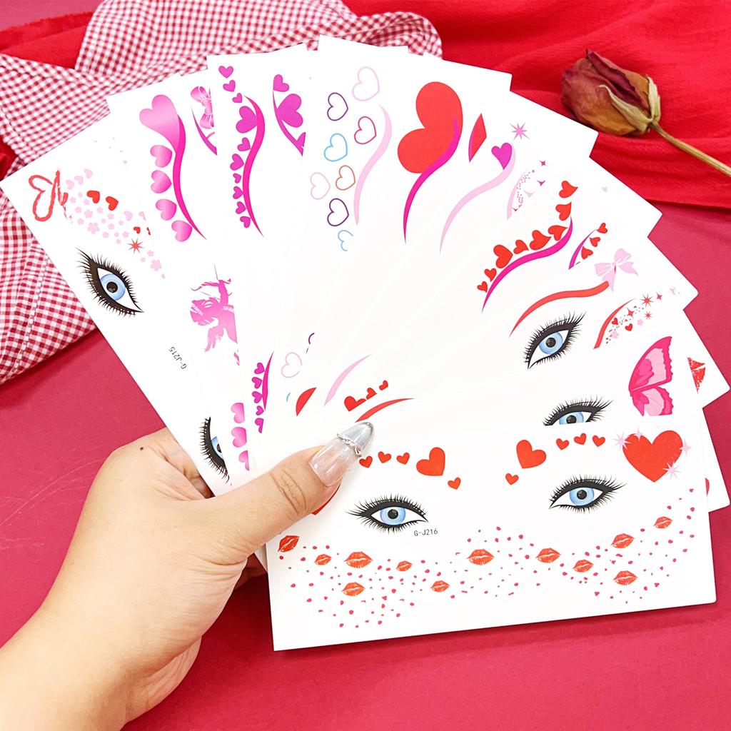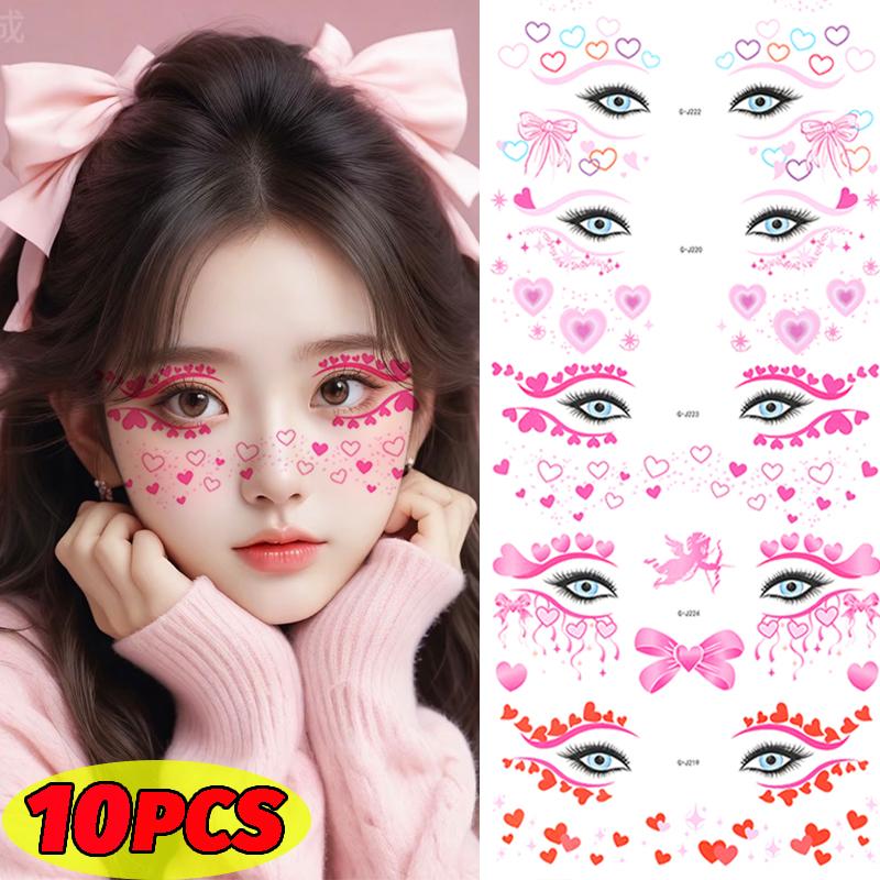 1-10 шт. Наклейки для лица на День святого Валентина с рисунком любви и бантика, безопасные, удобные, легко удаляются, временные татуировки из переводной бумаги