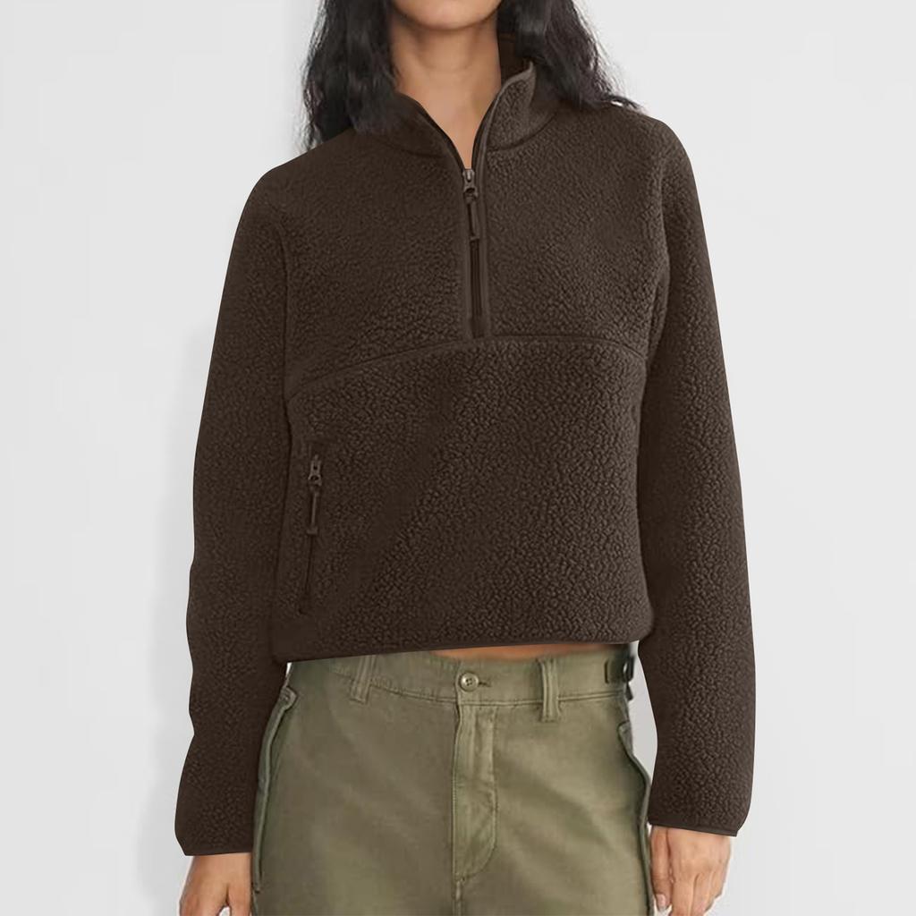 Женский короткий флисовый свитшот на молнии до середины, плюшевый теплый кардиган