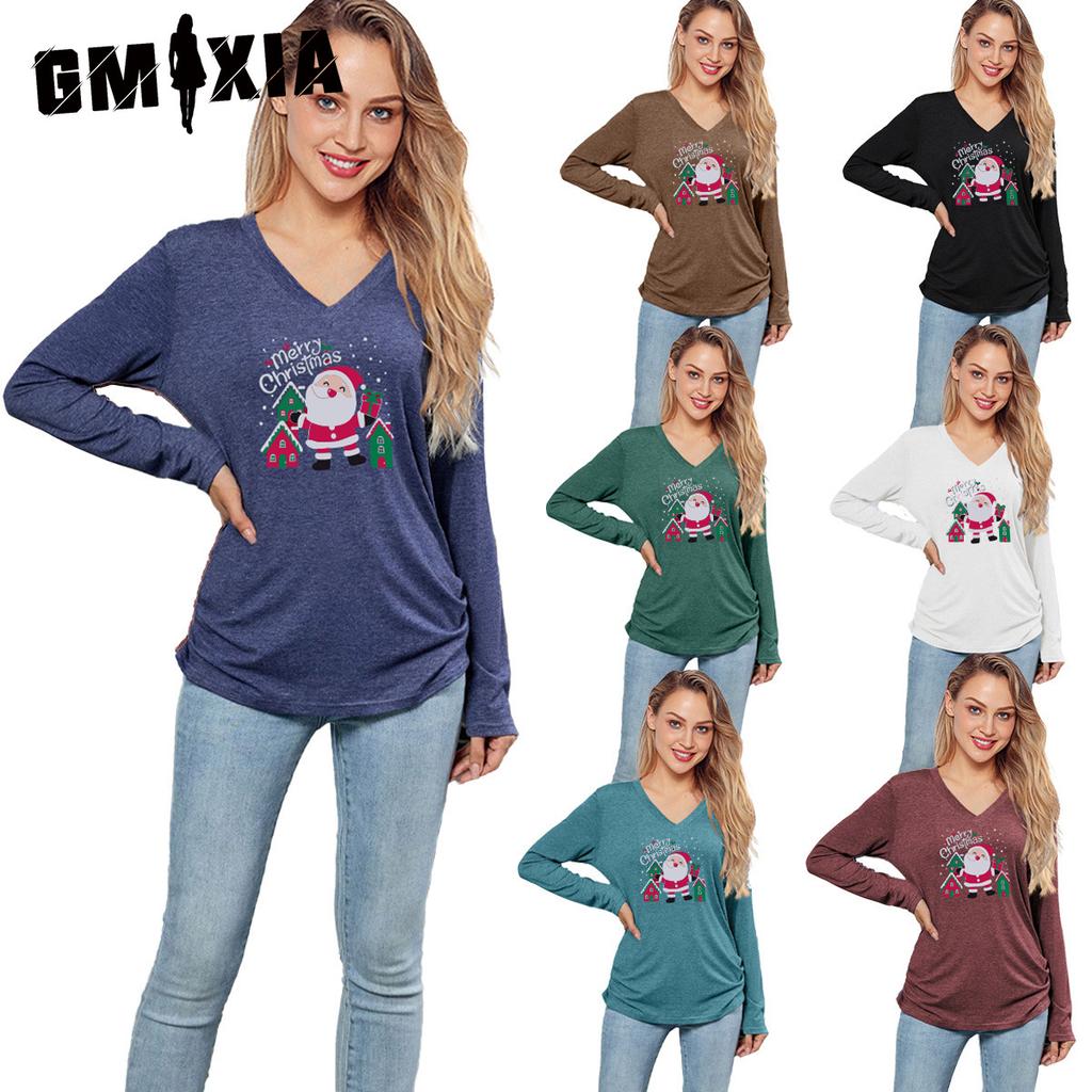 GMXIA Однотонная футболка свободного кроя с принтом рождественского элемента для женщин